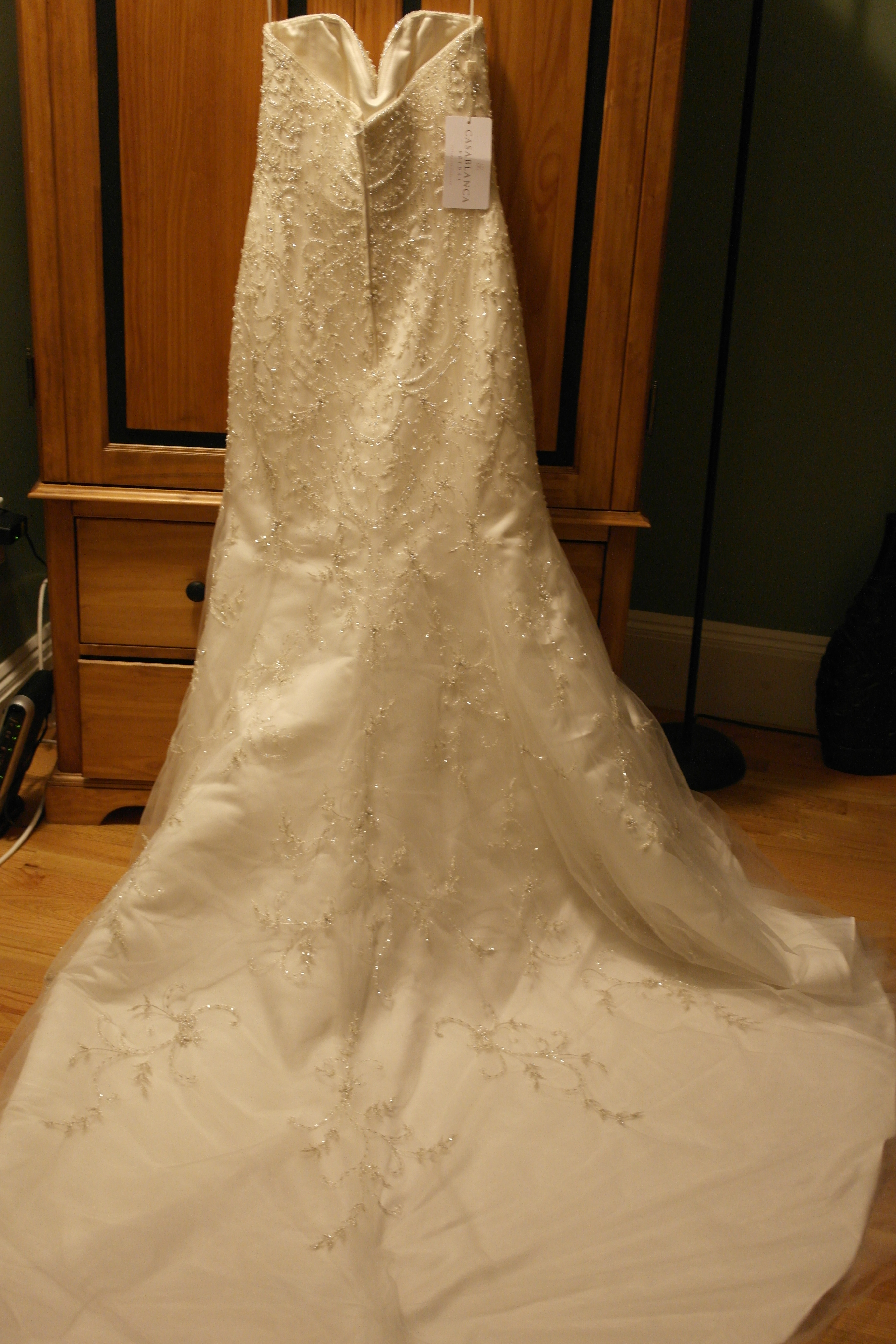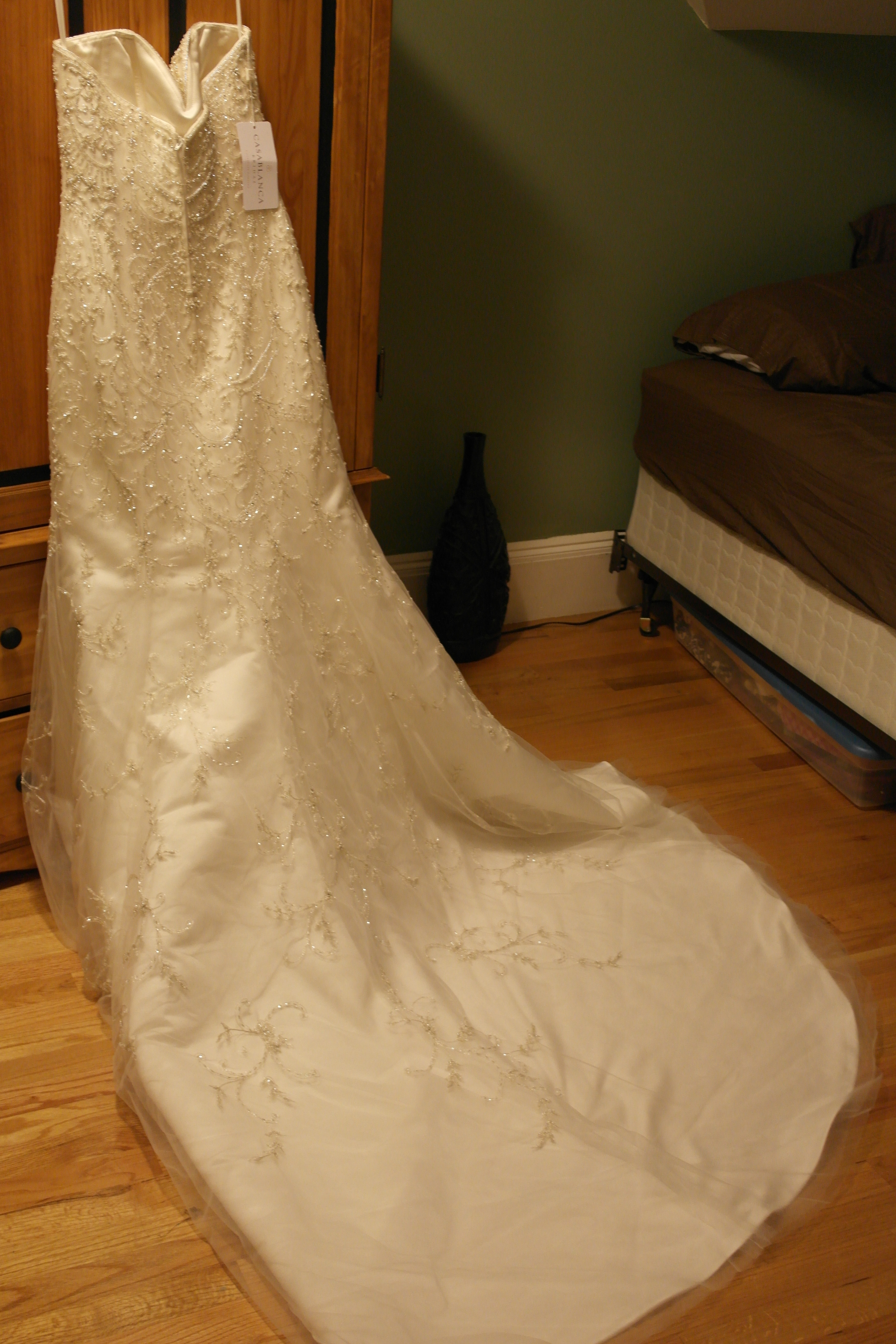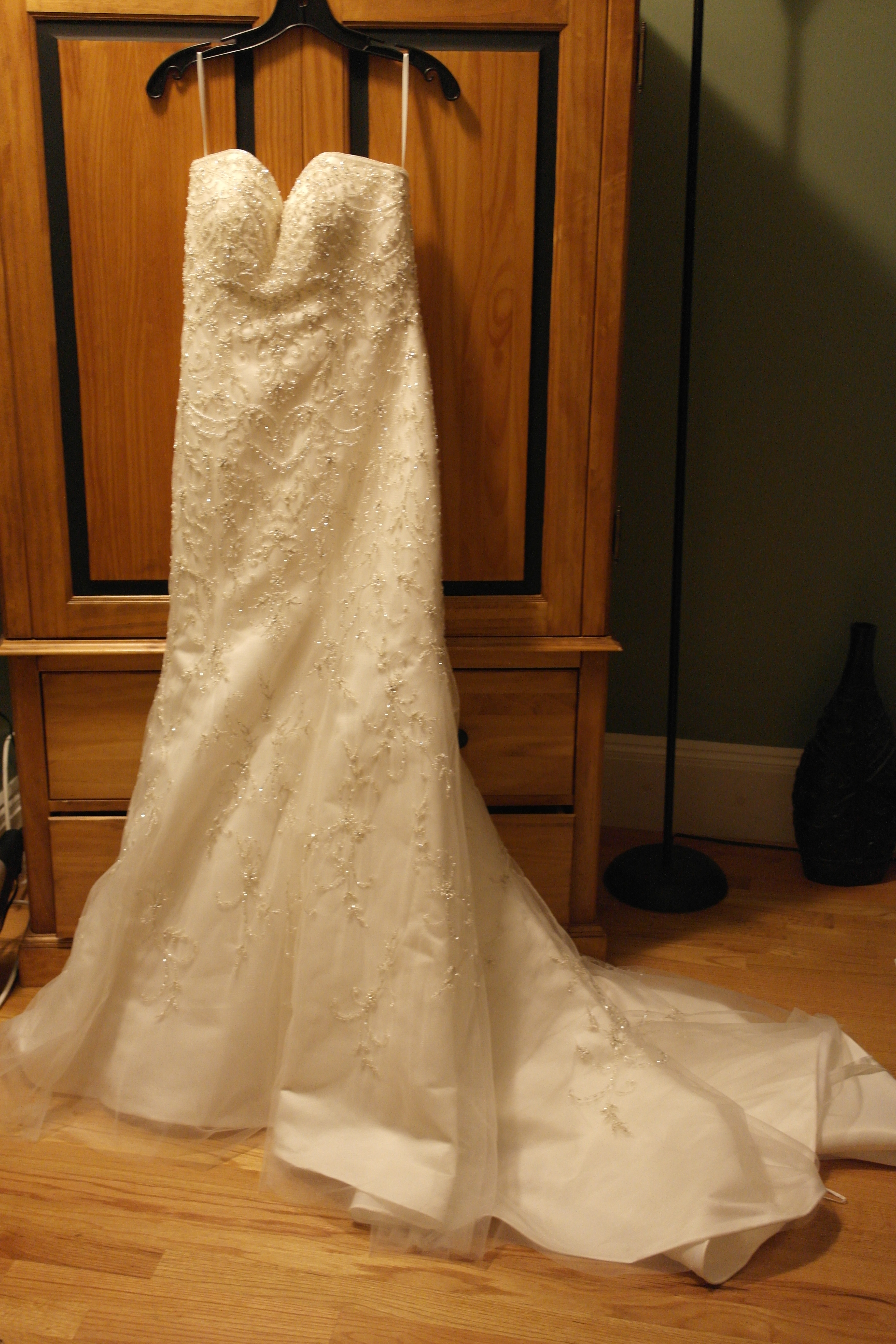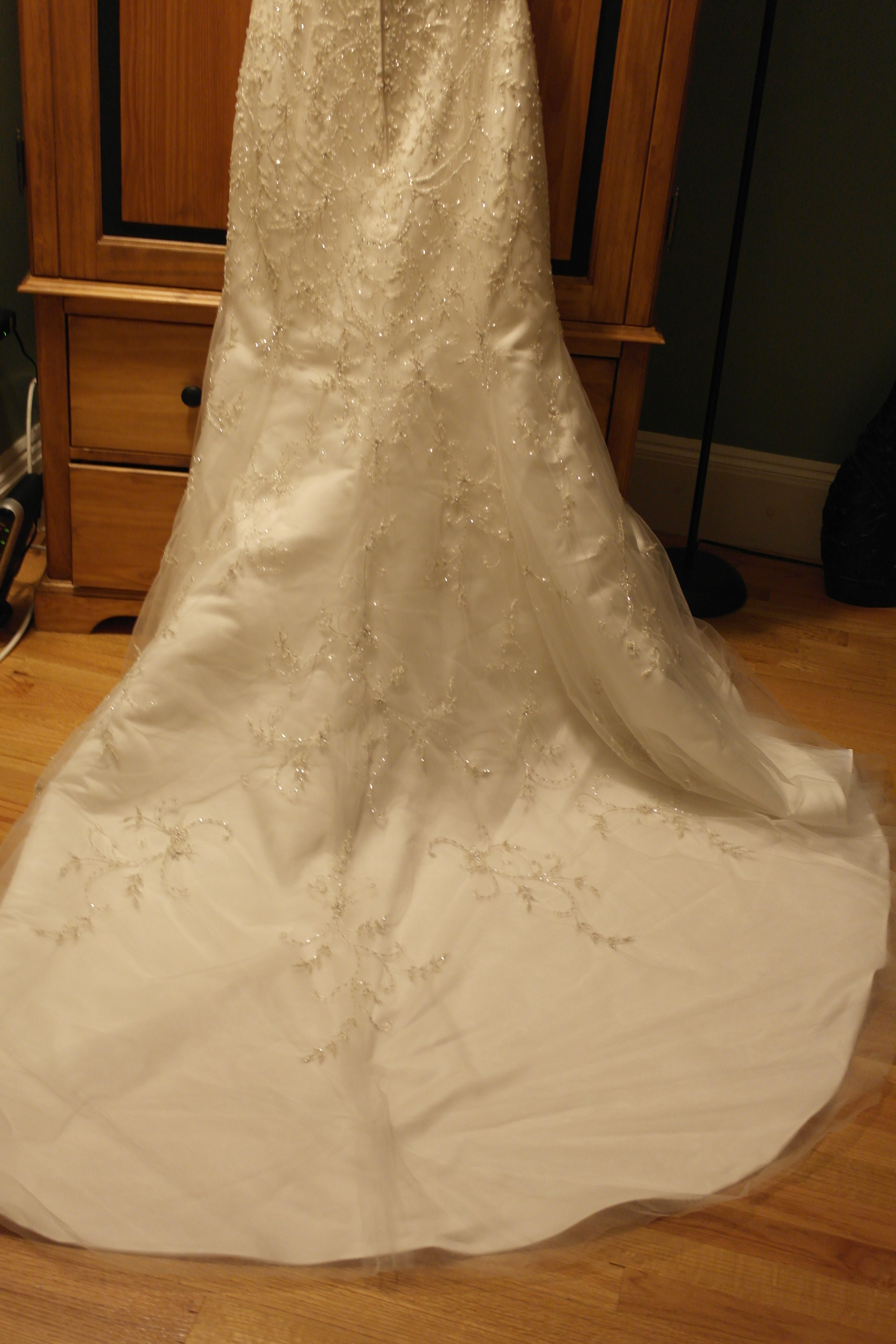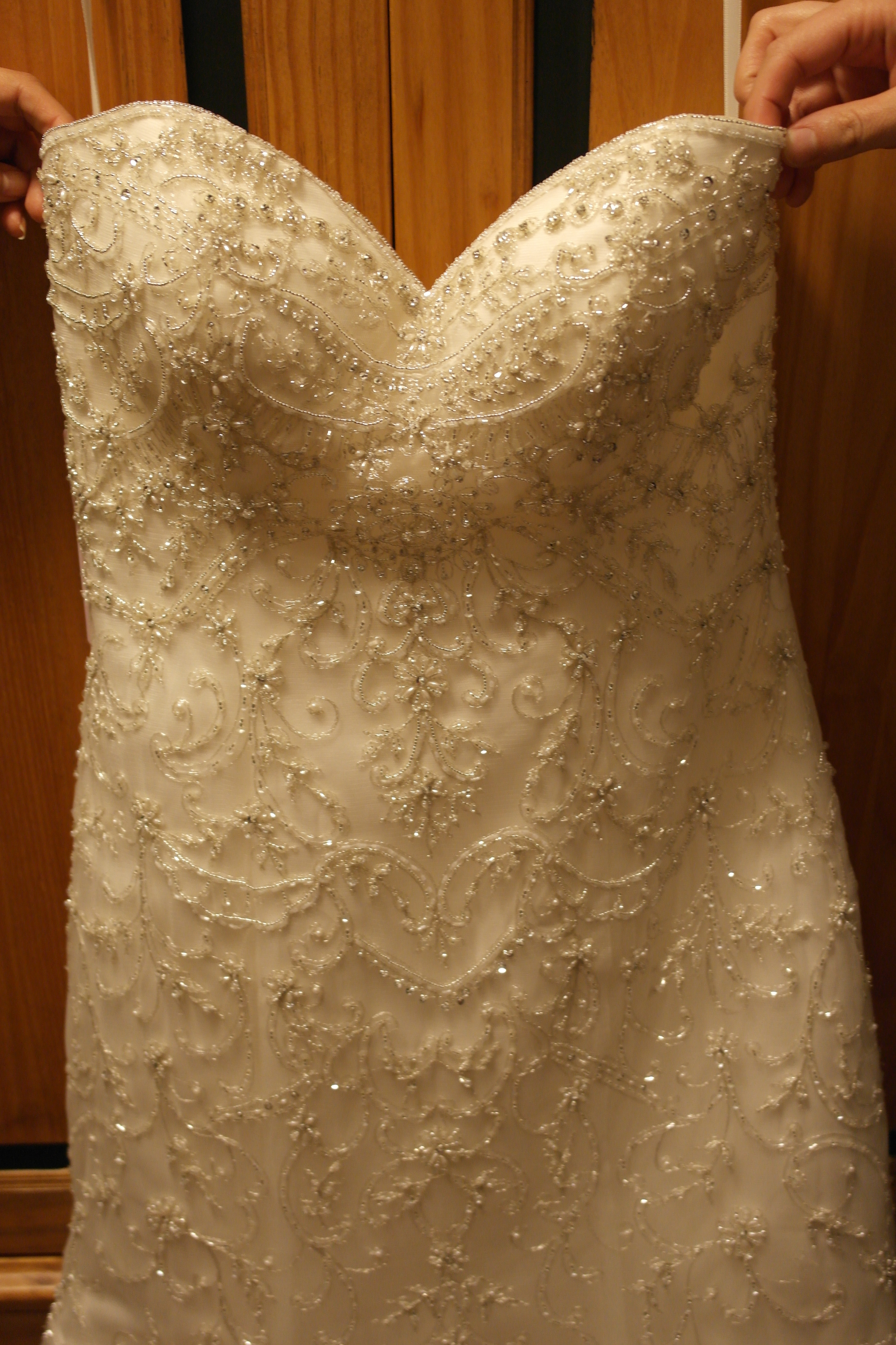 gown with netting overlay, with Swarovski Crystal sequins, pearls, and