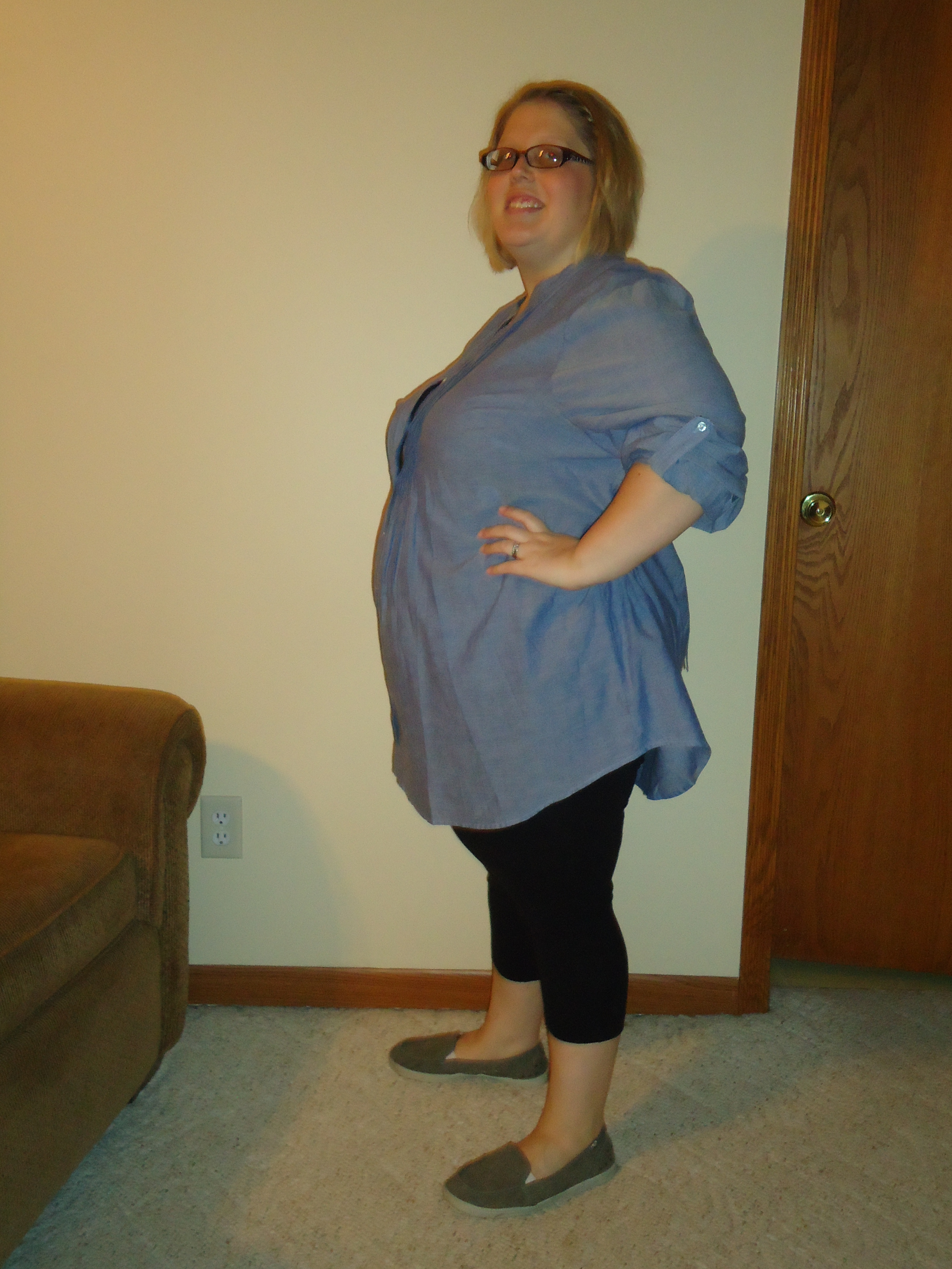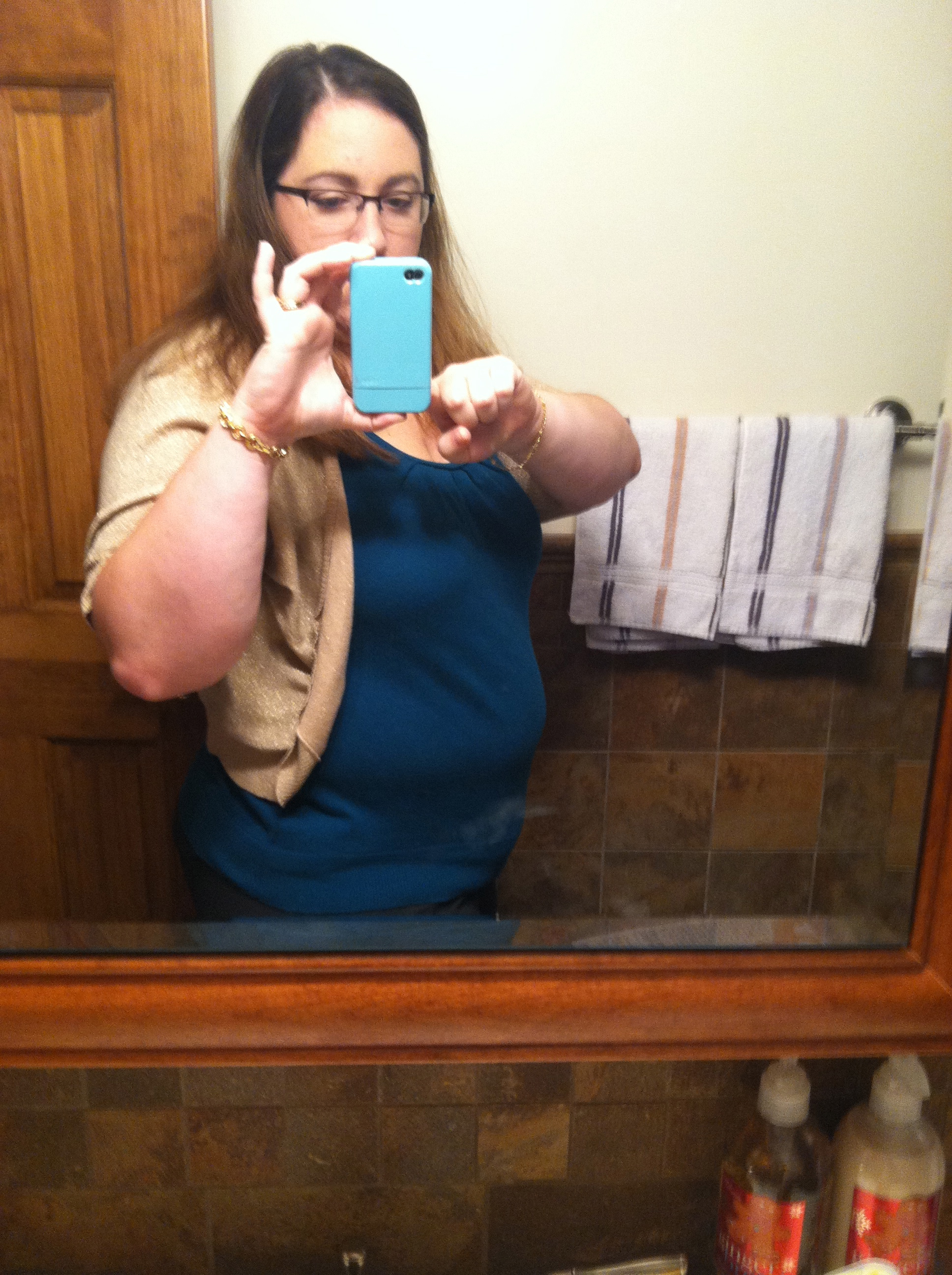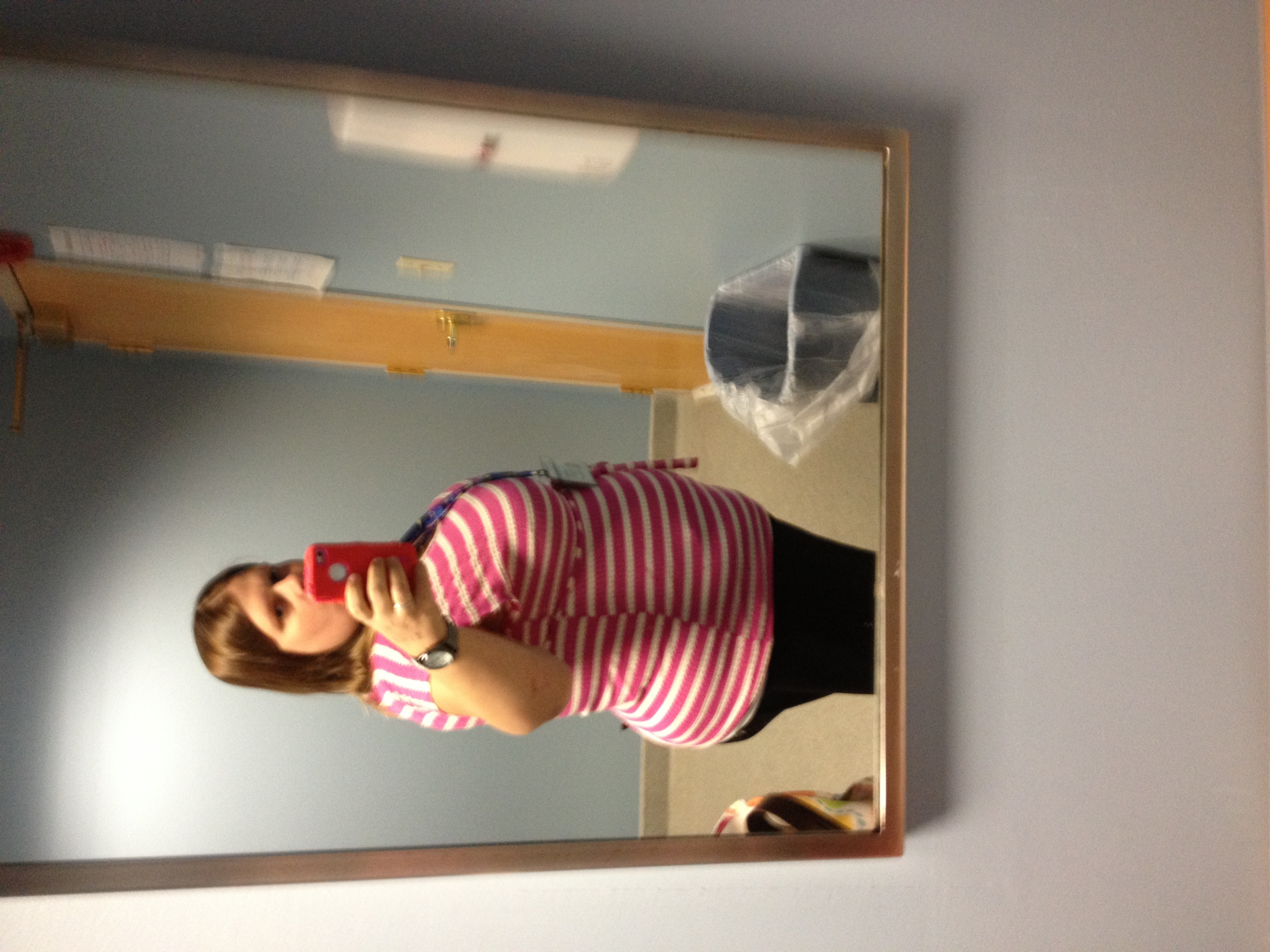 • @Madeline10L - I love that your shirt sticks out over your belly!  You know you're near the end when it won't touch your waistband anymore :)