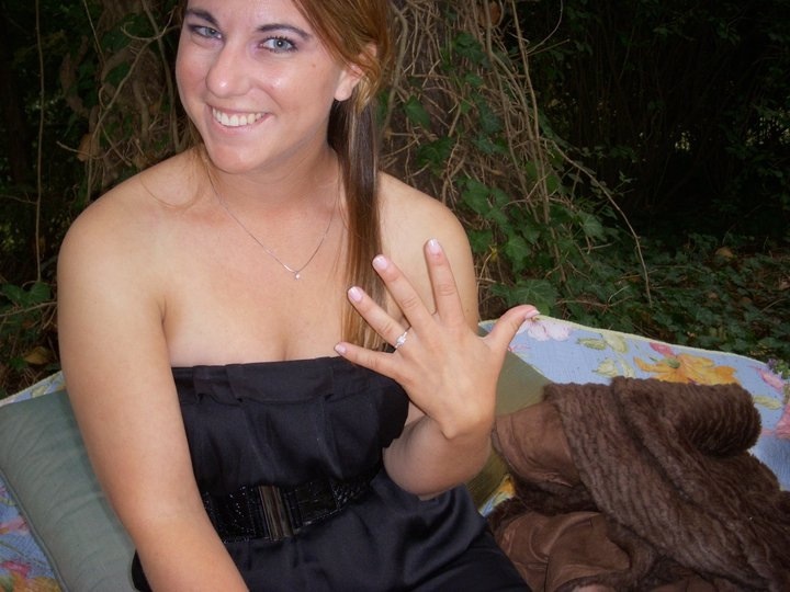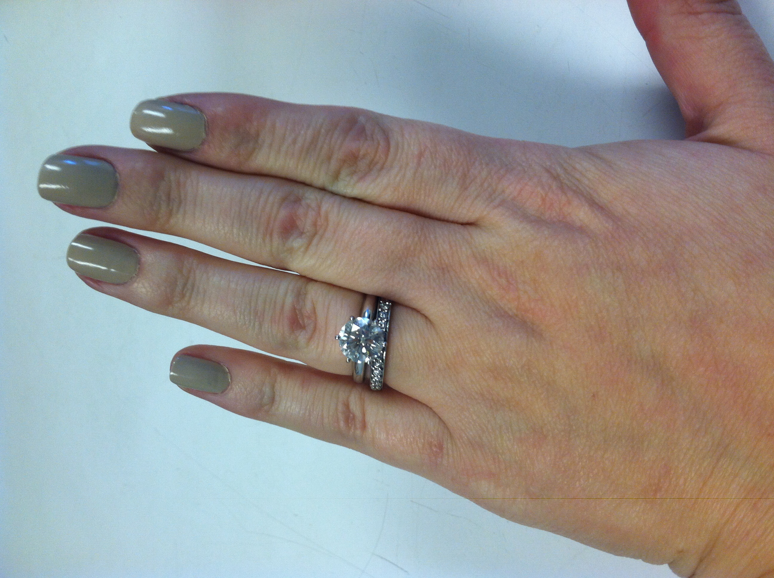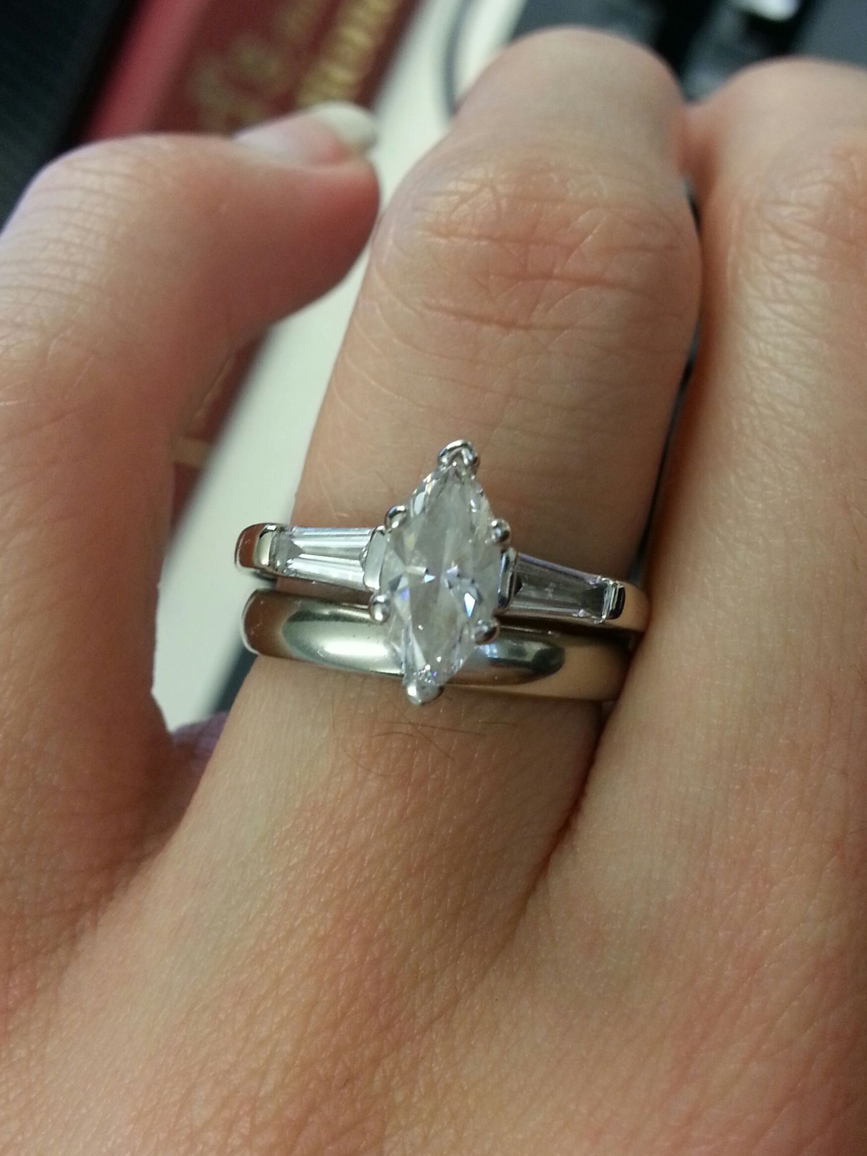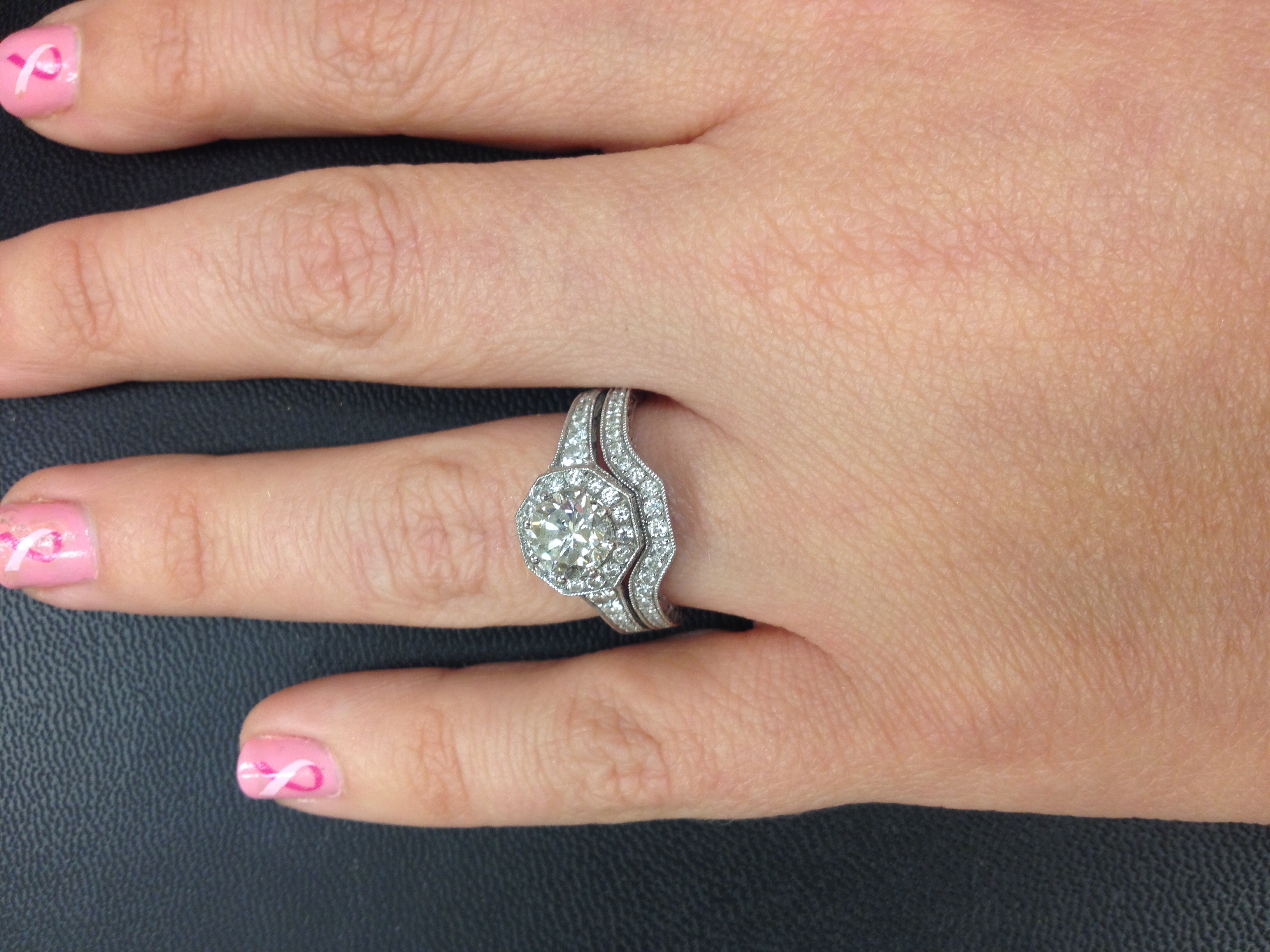 The engagement ring was actually just the center stone, and the wedding band wraps around it and has the other bling on it.