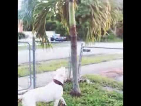 She usually brings down the hanging seed pods, but she brought all of them down, I think shes trying to bring down the whole palm tree!!!