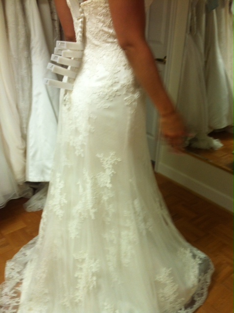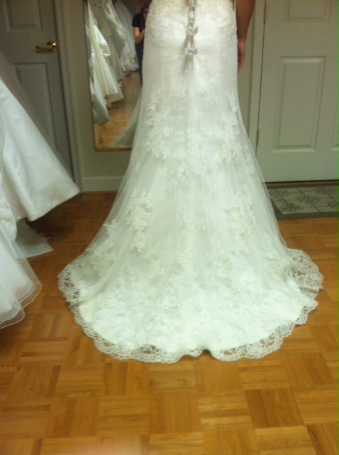 This gorgeous dress was purchased as a sample but I was only the 2nd person to ever try it on and has not been worn outside. It is in new condition, no rips or stains. The silhouette I would say is between an a-line and a trumpet as it stays close to the body through the hips. Price also includes the detachable train (which I had considered making into a veil it is gorgeous, I was quoted at $120 for a seamstress to do so). The train is worth $350 alone. The dress is very flattering and romantic looking. Shows off just enough curve and has the desirable sweetheart neckline. This is a newer style by Sottero and Midgley so it will be hard to find as a resale. Please let me know if you have any questions at all! Email is shea5@tcnj.edu Stock photos available here: http://www.sotteroandmidgley.com/dress.aspx?style=711533 |
