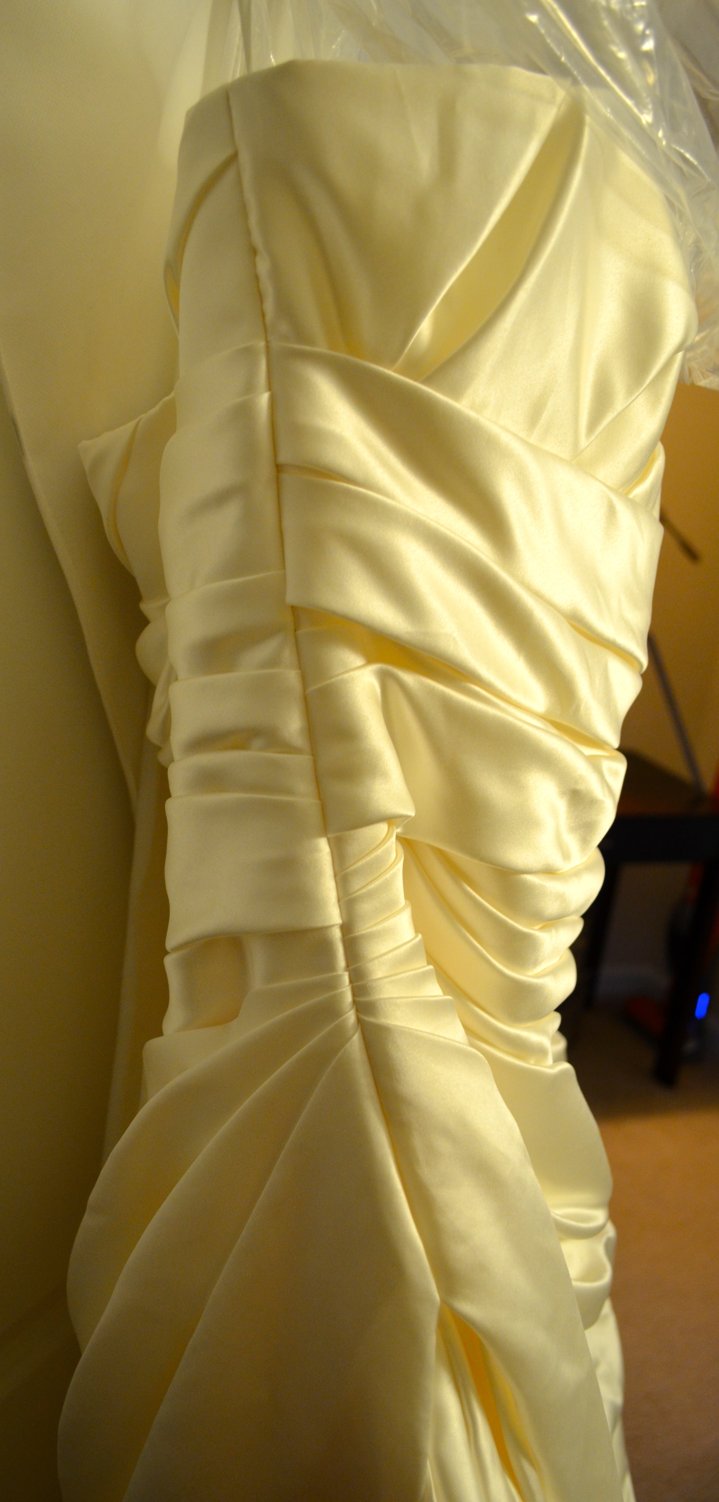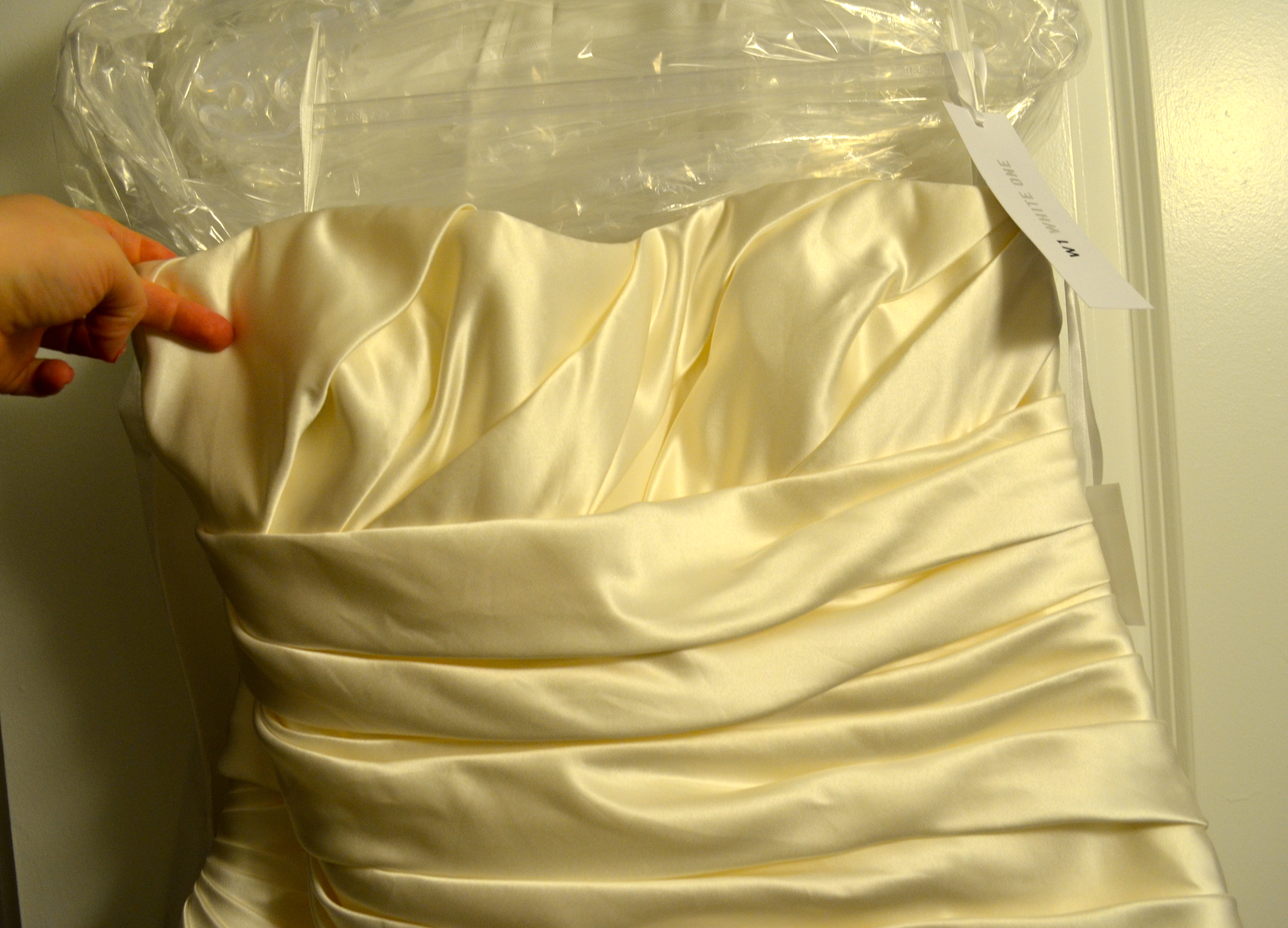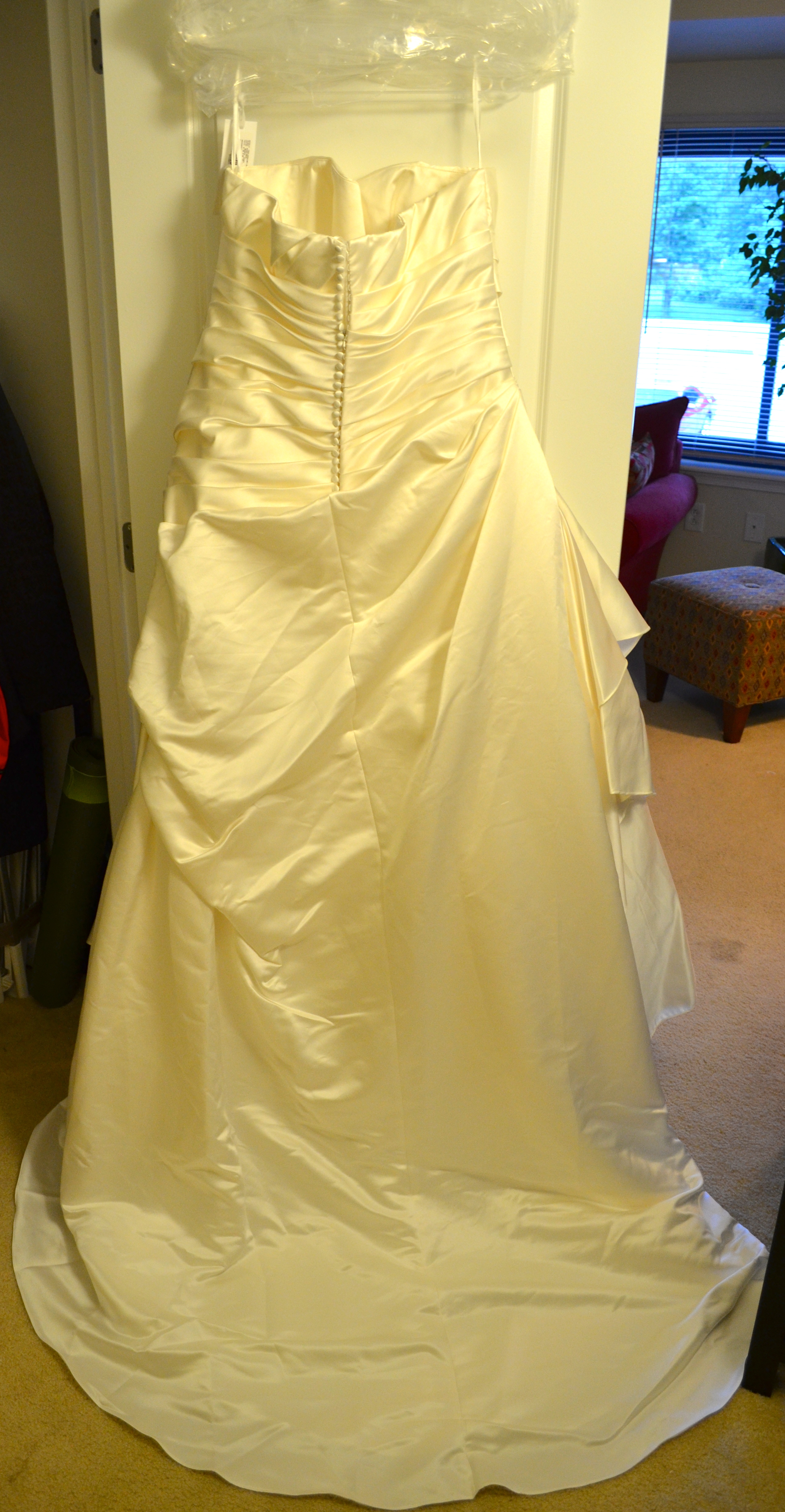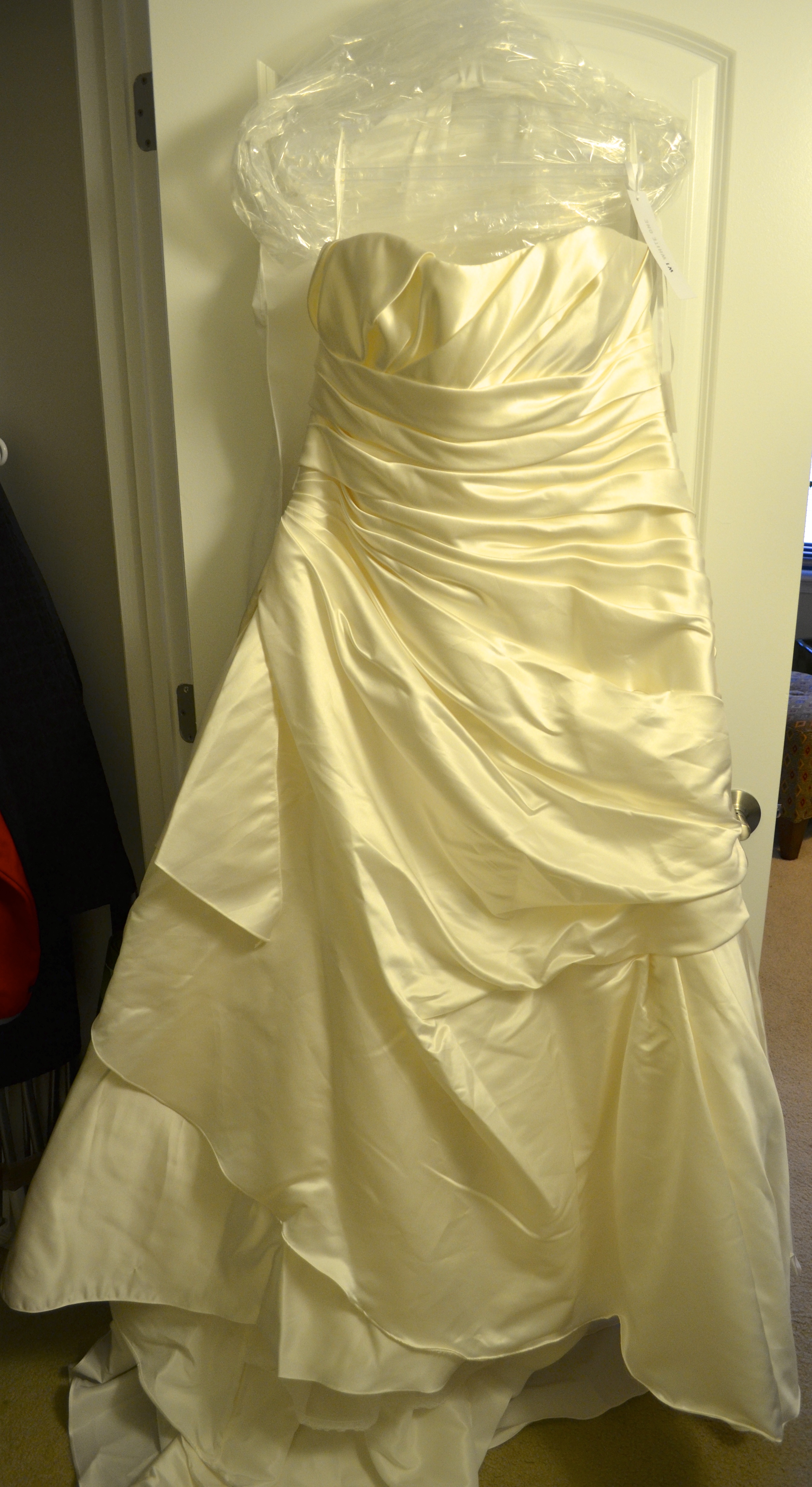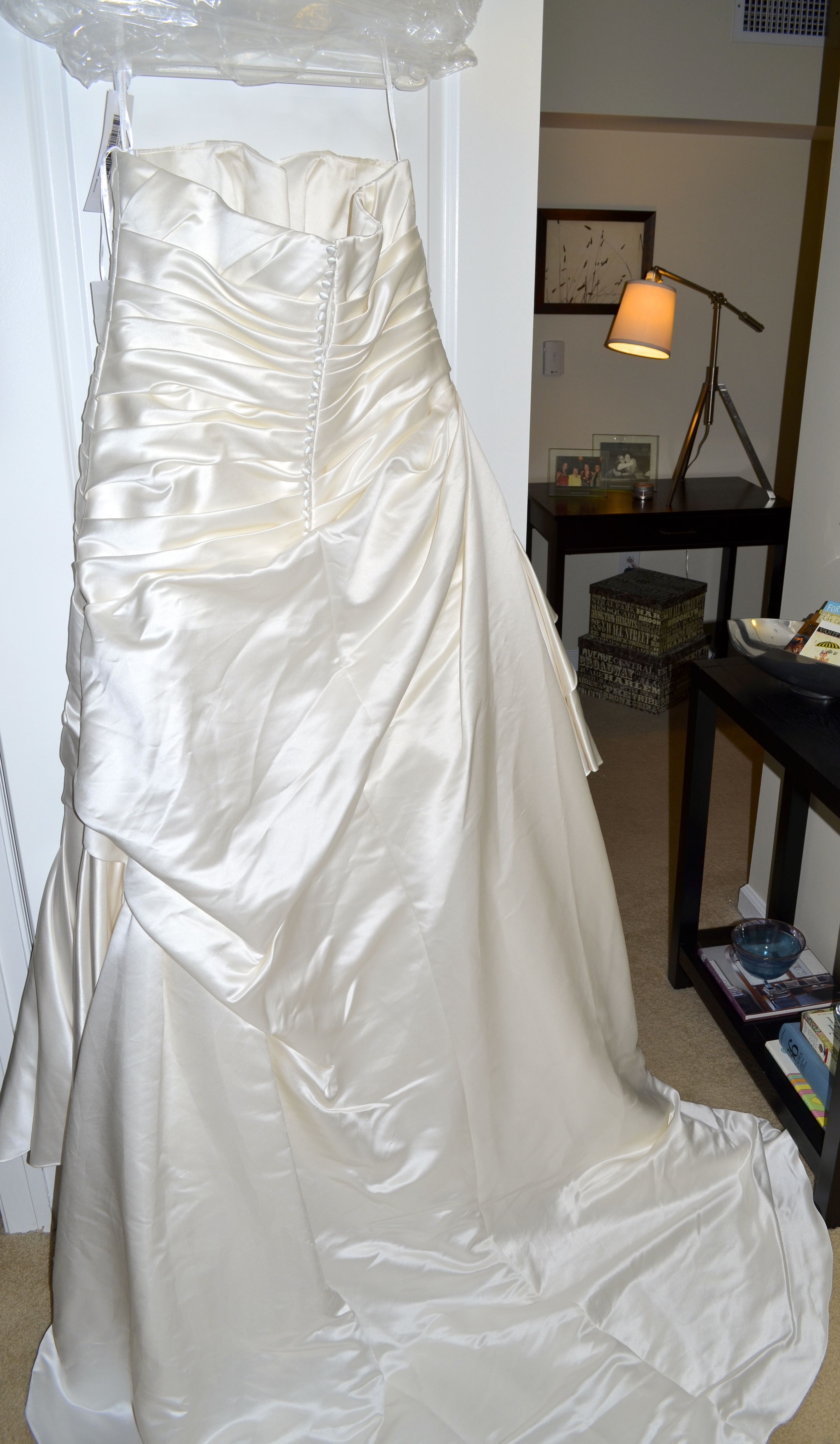 Dress is brand new and has never been worn! Ordered in spring 2013 and picked up late this fall, the dress still has its original tags on it and comes in the original packaging from the wedding boutique in Ardmore, PA. Item has not been altered at all, so you'll be free to customize for your body type!