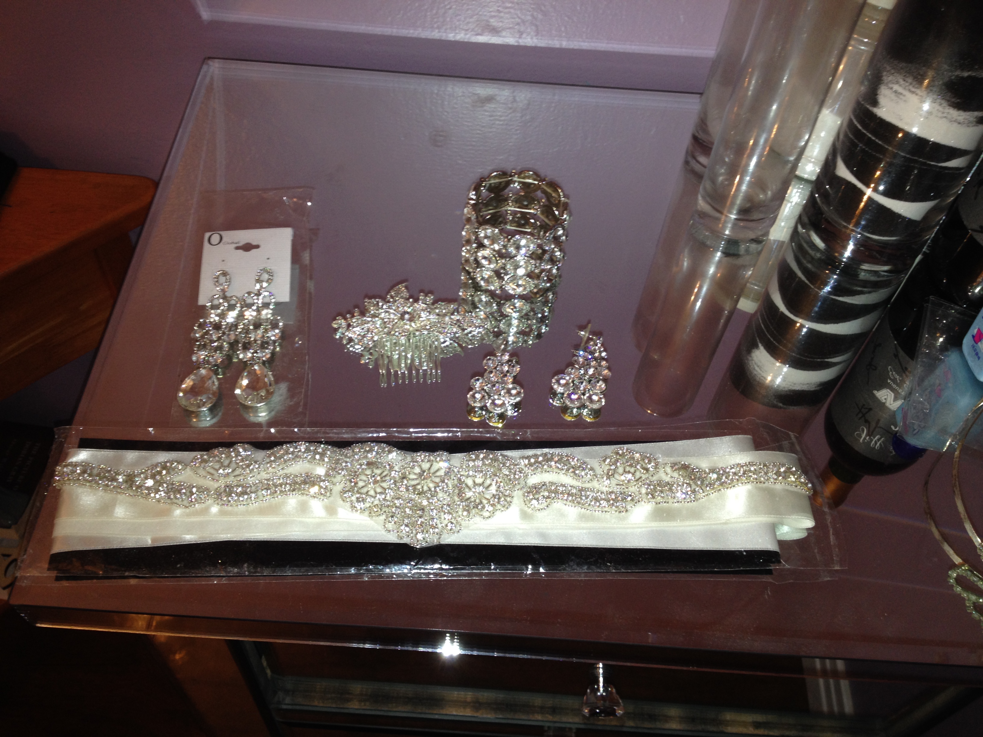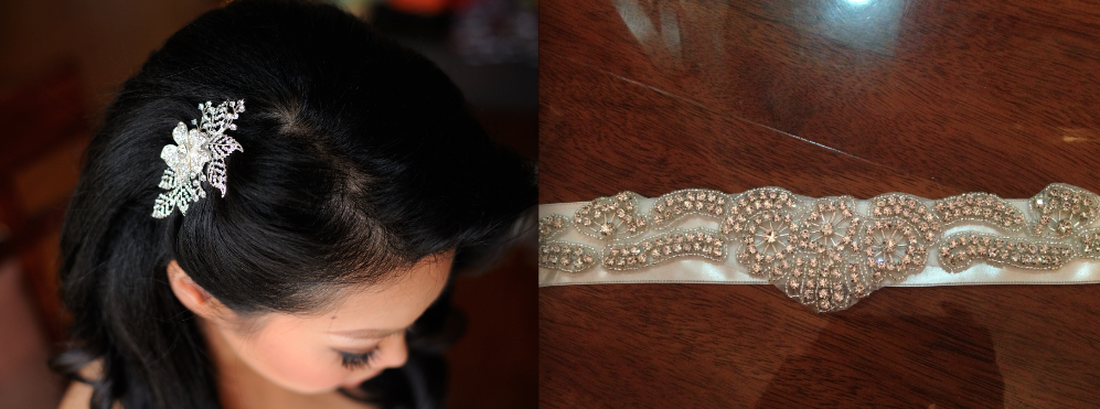 If you purchase this dress, I will also throw in all my accessories that I used. This includes my veil with rhinestones, two pairs of earrings, a bracelet, a hairpin, and my matching satin belt with hand sown embroidered crystals. The matching ivory belt alone is worth over $200 and the crystals match the crystals on the dress. The veil itself is over $80 and also purchased separately from Jinny's Bridal. For me, I wore the dress by itself without the belt for my ceremony and added the belt for reception. It really glammed up the look.