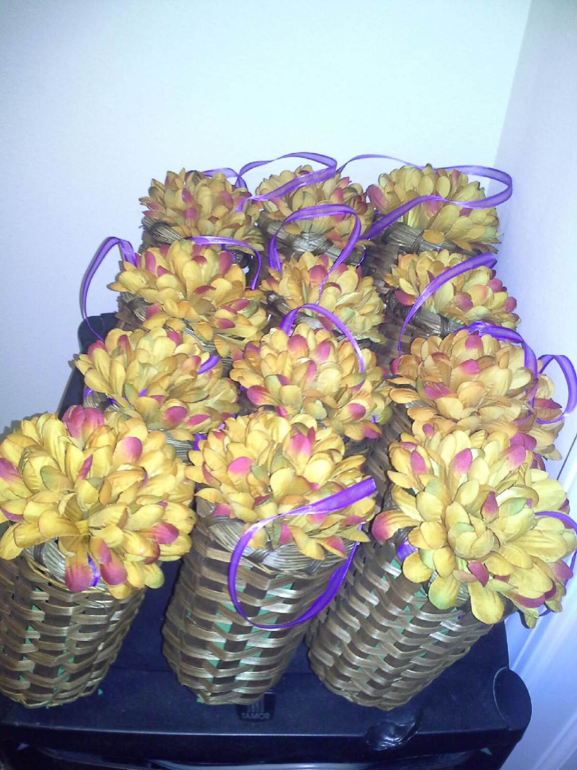 12- baskets. I used these to line the isle. They have a purple ribbon
