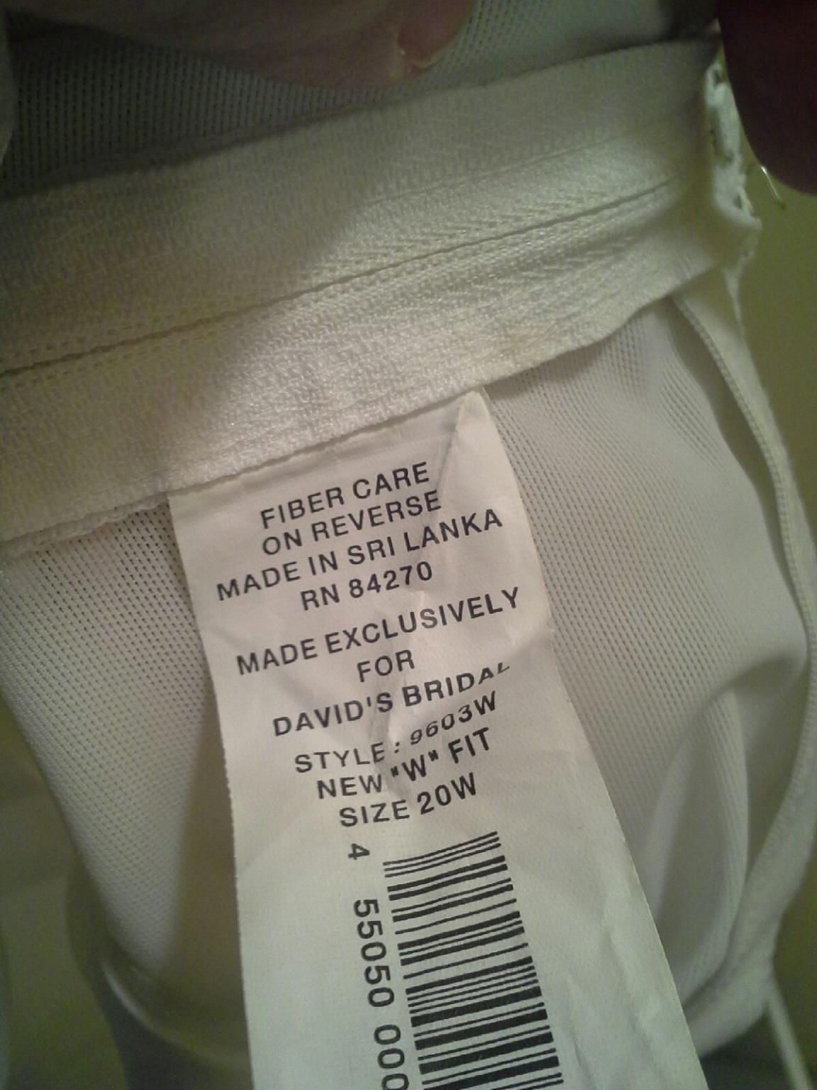 Crinoline from David's Bridal. Size 20w. Worn only once. Has a couple