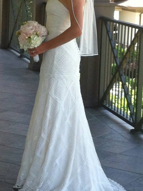 This beautiful wedding dress has never been worn. It is a size 4 and is has NOT been altered in any way. I purchased this dress to wear for my wedding day, but I've decided to wear a a family member's dress instead. Attached are some pictures of the Emerson dress. I purchased this dress for $1400. I am selling it for $1200. Please contact me if you are interested.