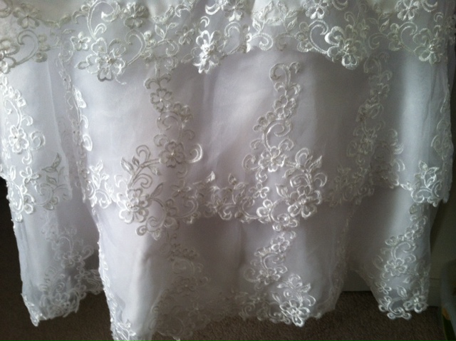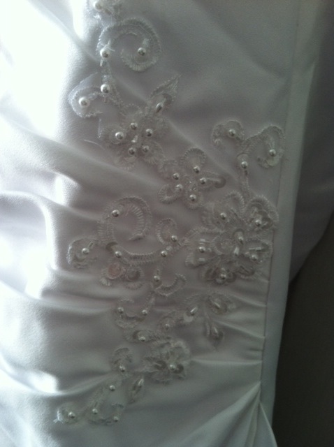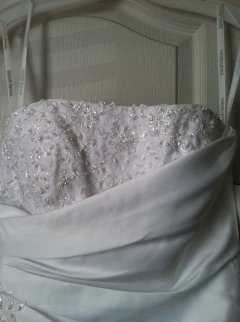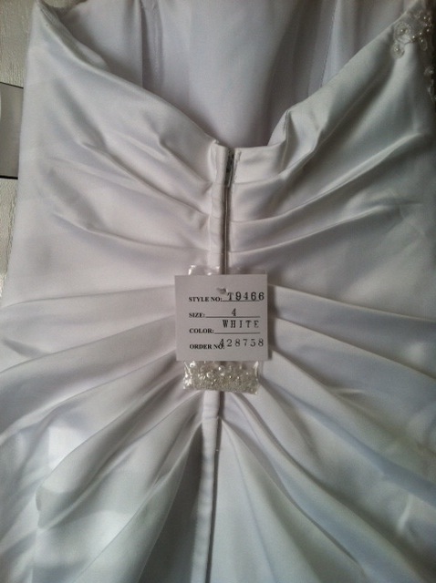 New, never altered, white David's Bridal wedding dress, Size 4. Comes with underskirt (size 6) and veil. Tags still intact on all items. $450 for everything. Located in Nashville, TN area. Let me know if you have any questions. Thank you!