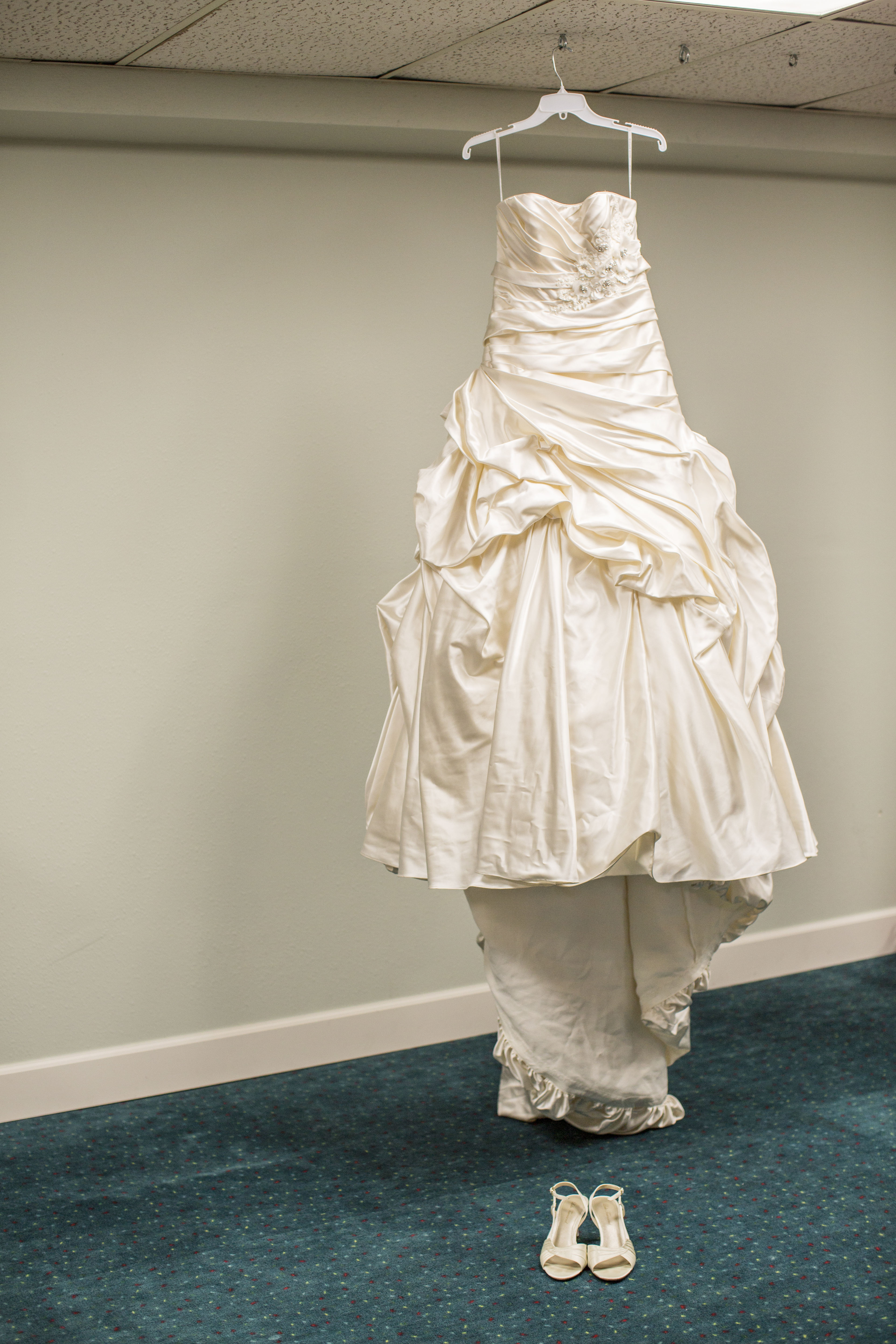 Ball Gown. Size 12. Never been altered. Corset back. Alabaster color. Belt and beading on top. Built in boning (kind of like a built in corset). Has a train. I bought it for $1050 and trying to sell for $500 You can also see it here with information on how to contact me