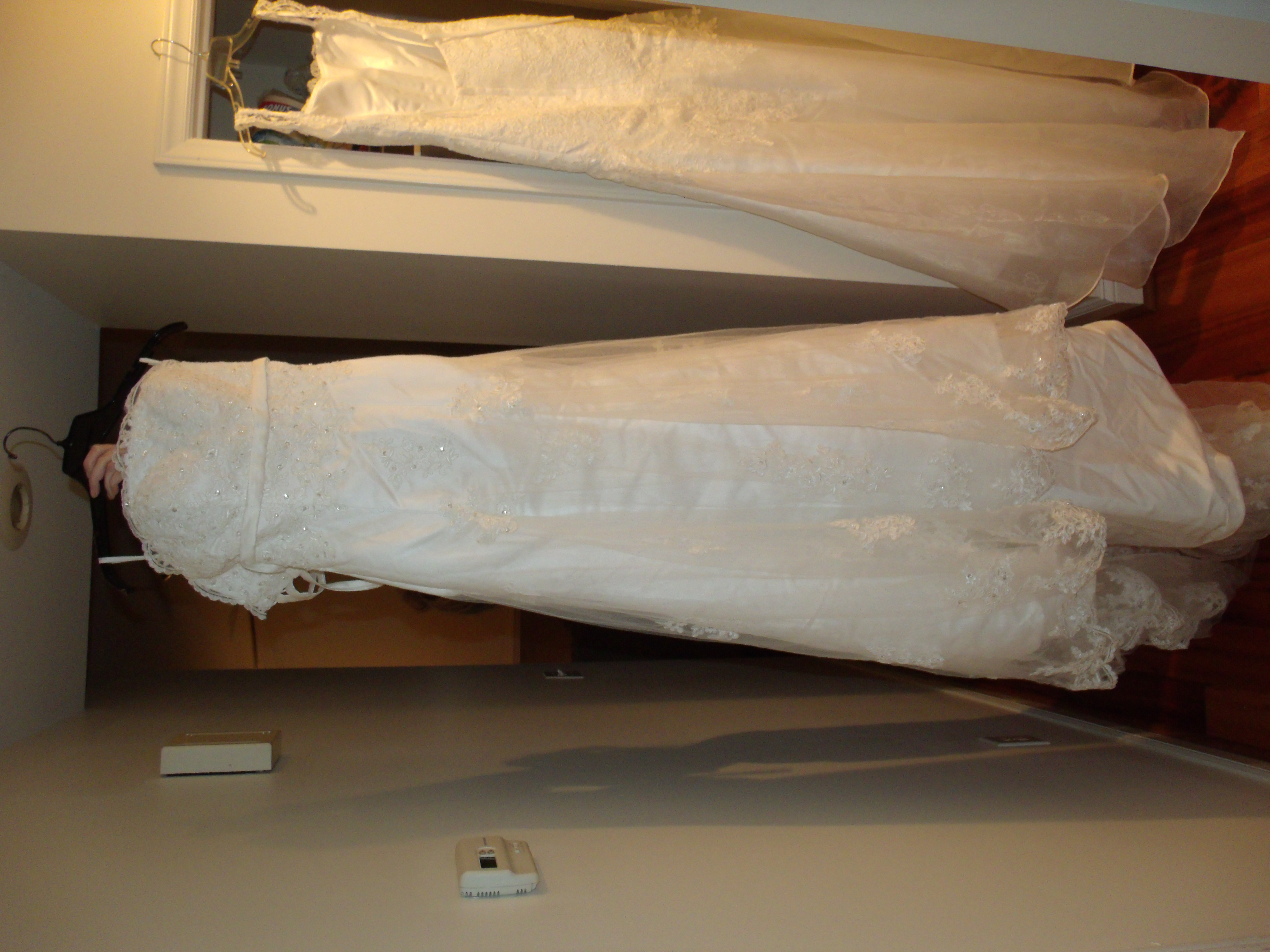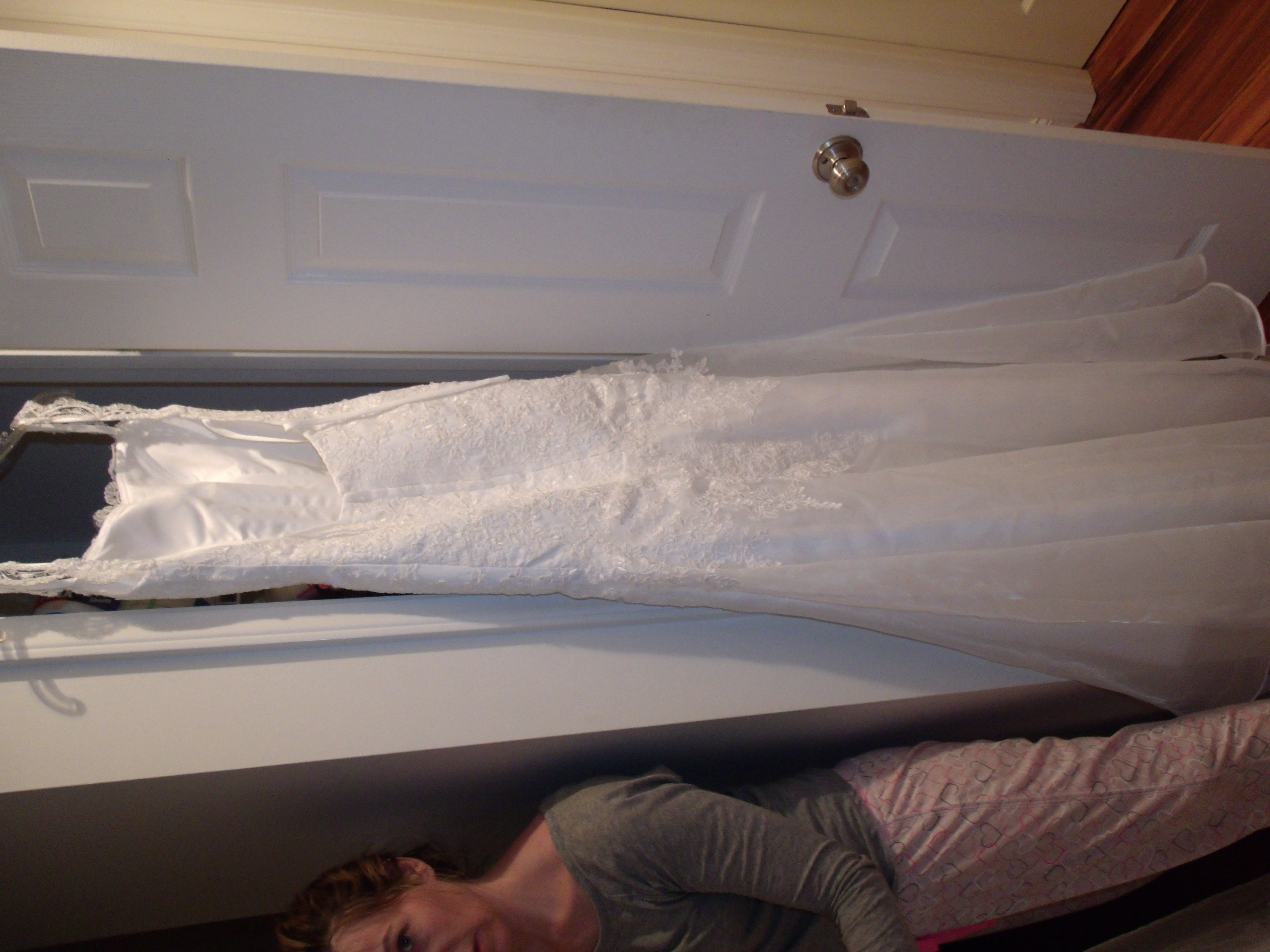 Size 4. These are so beautiful, I couldn't decide. Please help me make room in the wedding closet. Four dresses available. Can send more pics as needed.