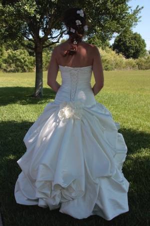 I am selling my maggie sotterro wedding dress. worn only once and is in beautiful condition. This is a maggie sotterro dress Ambrosia in stock size 8 and is the alabaster/ivory color. No altering has been made to this dress. This dress is regularly $1500 and I want to ask $750 for it. o.b.o