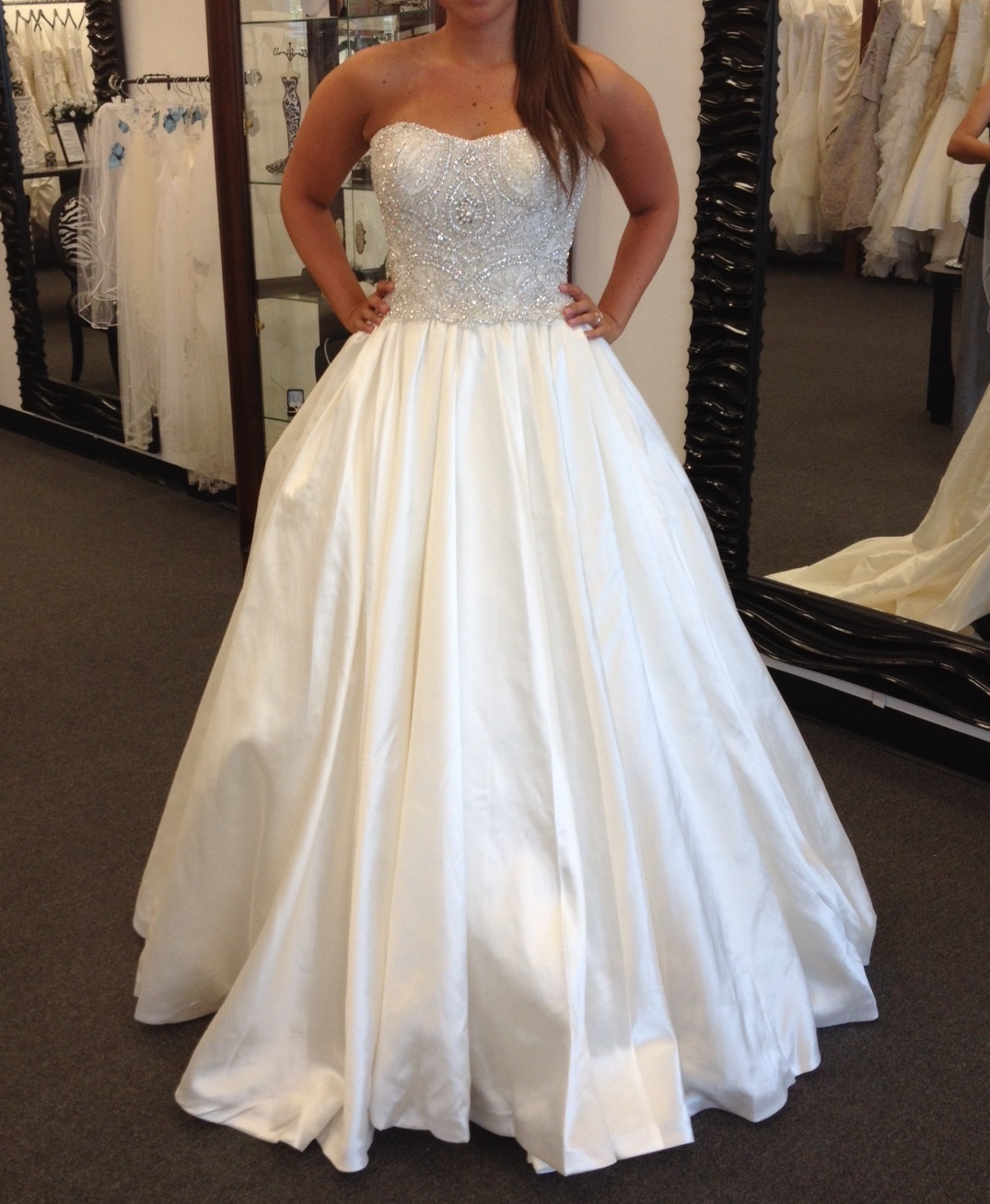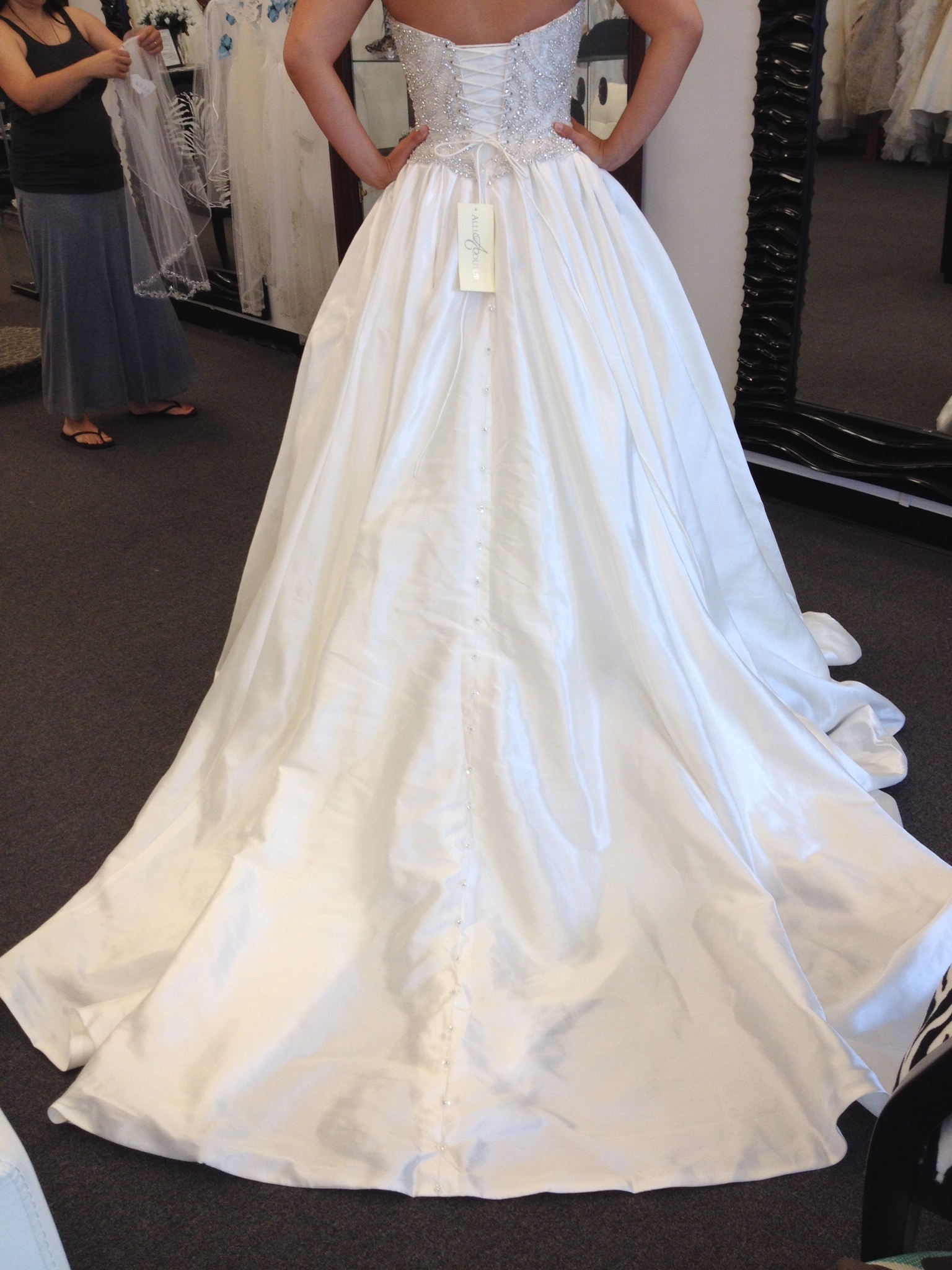 ALLURE COUTURE C247 is a breath taking, taffeta ball gown. The skirt has full pleats from high waist through the train. The high-waisted, fitted bodice features a sweetheart neckline and is fully detailed in silver and iridescent Swarovski crystal with a sexy, corset back. I bought it brand new on 6/14/2014 and then found one elsewhere that happened to be EXACTLY what I wanted. This is was close second. Its BRAND NEW with tags. Its even in the $20 gown bag purchased from the store to prevent discoloration. Its original price is $2,023 and I am selling it for $1,300. I need to get it off my hands in order to buy the other one. If you are interested please e-mail me at Kerriep7@gmail.com.