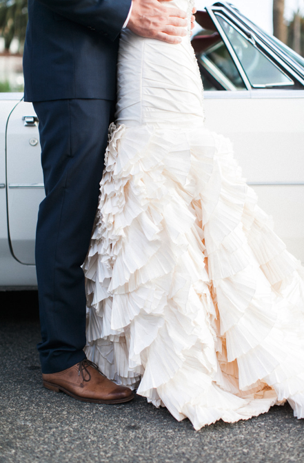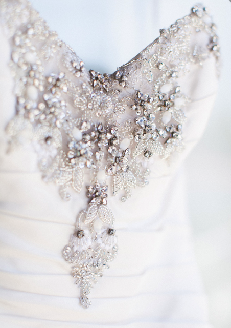 neckline beading, fabulously ruffled train and soft and luxurious