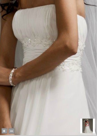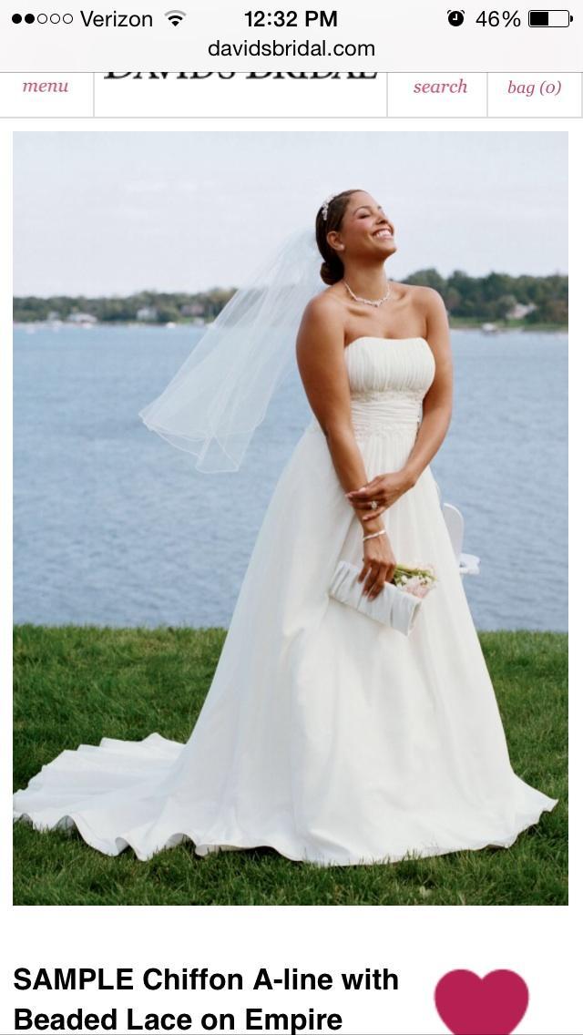 Dress for sale: David's Bridal, size 6, Chiffon A-Line with beaded lace on Empire.
