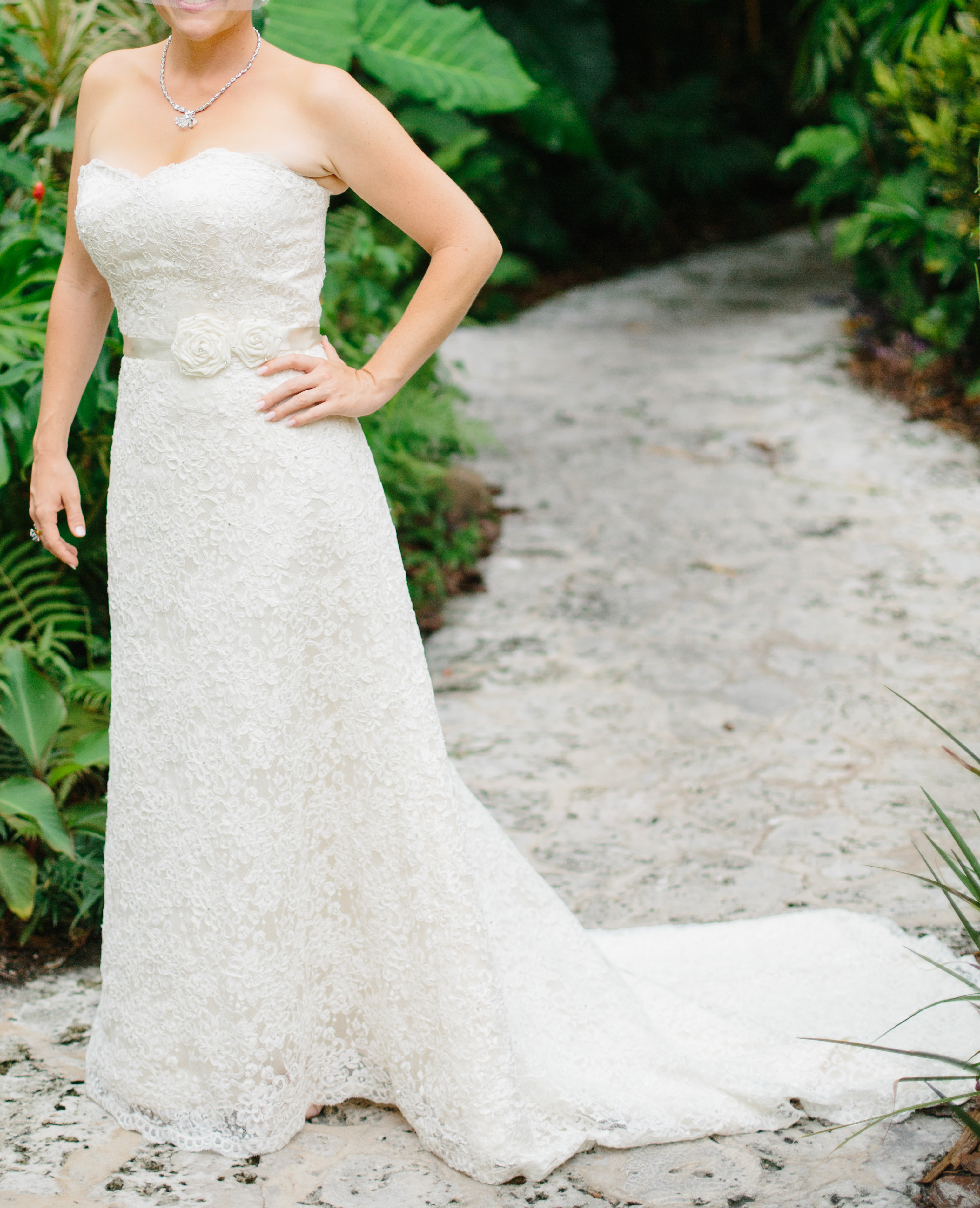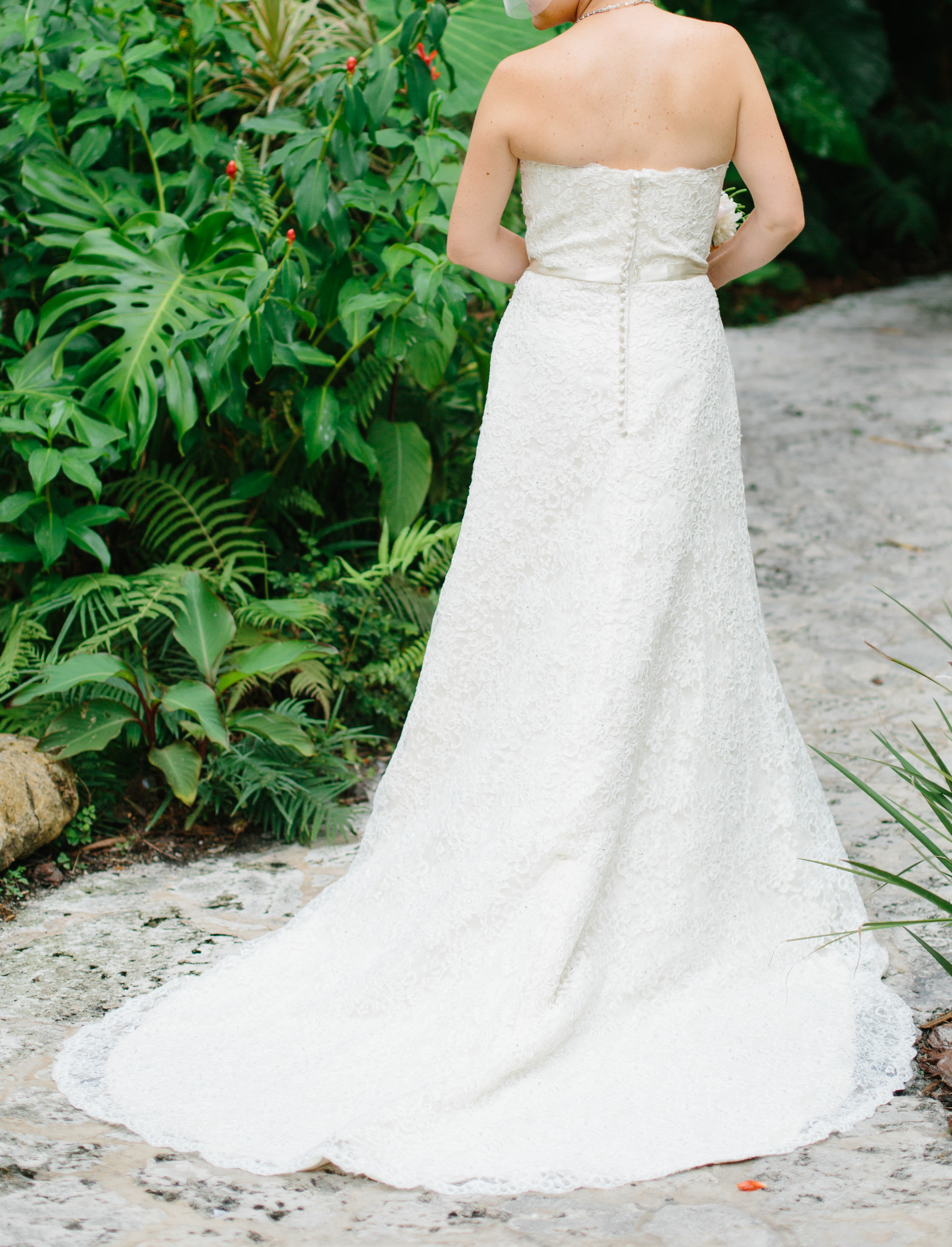Strapless Lace A-line Wedding Dress with Chapel Train - $500