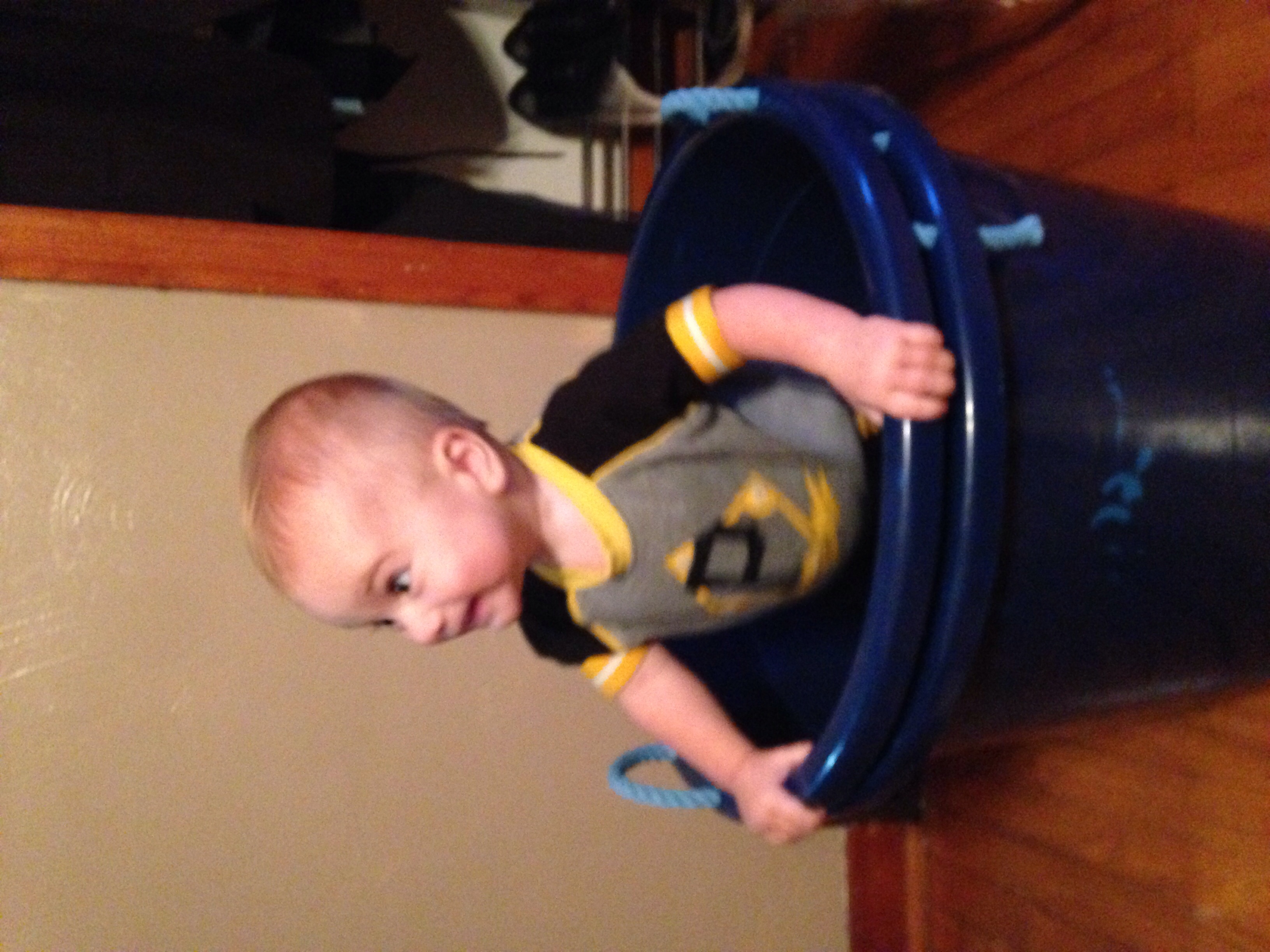 • Woooohooo! He's adorable! We should get our babies together. Although Ben would probably just climb on Donnie P.