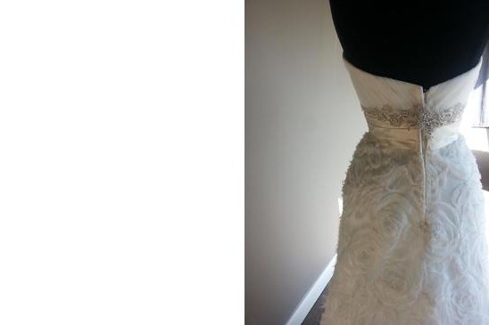 Hi I am selling this beautiful wedding dress originally purchased at $1,300. It is a size 4, champagne color and has great lace and beading detail. It has sewn-in cups and french bustle included. If you are interested or have any questions, please contact me at kimlisab@yahoo.com.