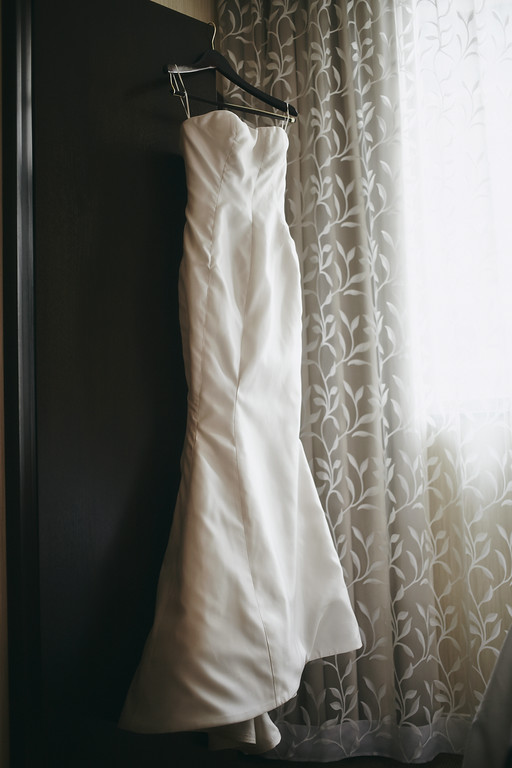 I would like to sell my gorgeous, silk Angel Sanchez wedding gown. The gown is elegant and unfussy--fitted with a slight, asymmetrical flare at the bottom. What makes the gown so special is the asymmetrical seams, that draw the eye and create a beautiful shape. Dress has a tag size 4, nicely altered to about a 2--I am 5 ft 4 1/2 inches and weigh about 121 pounds--it fits me perfectly. The dress has an inner corset and bra cups (that can be removed if you like). I have and will include all the gorgeous material that was taken out to make any further alterations easier. Dress was originally priced at 5,500--I'd be happy to sell for 2,000 or best offer.
