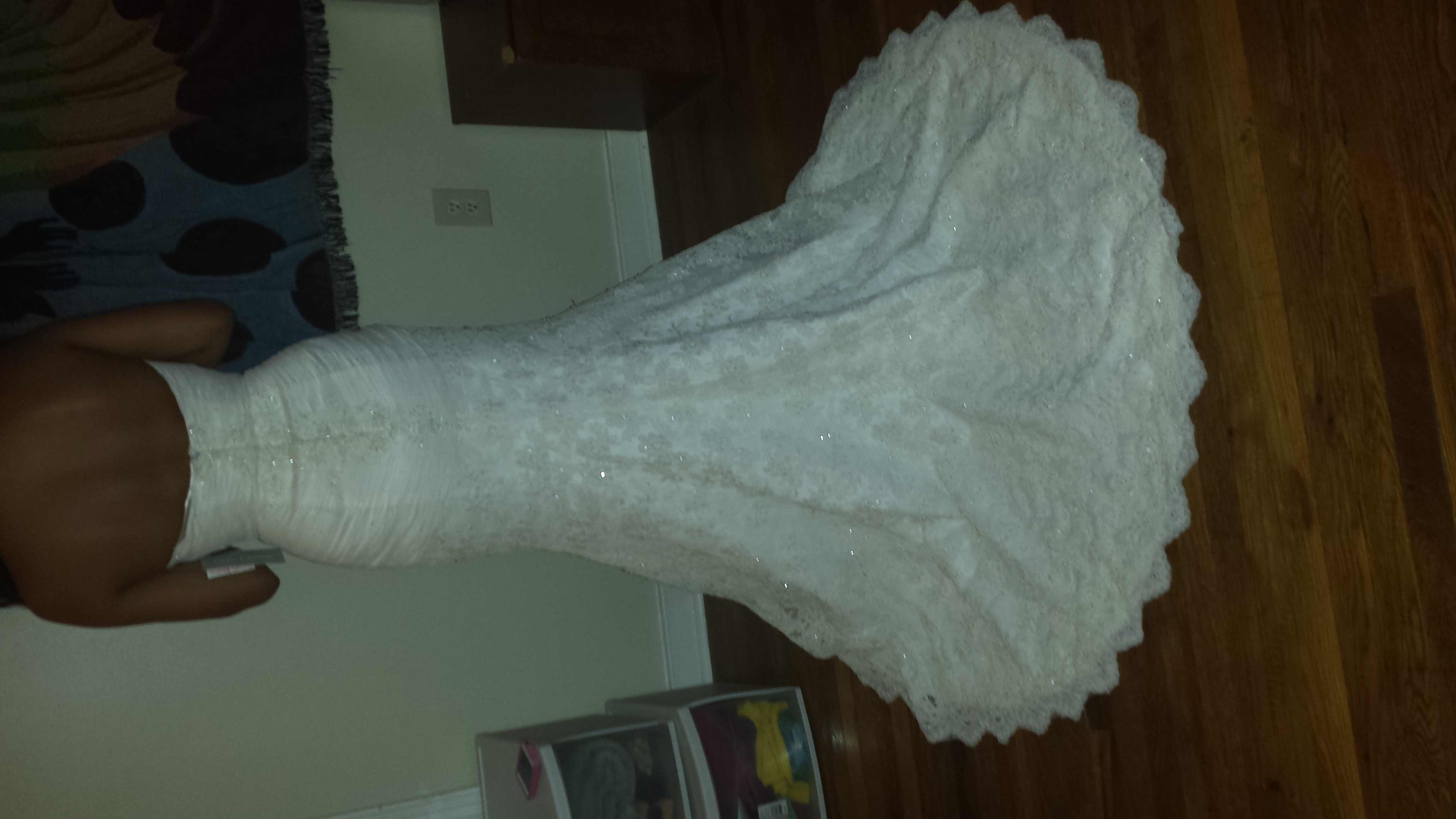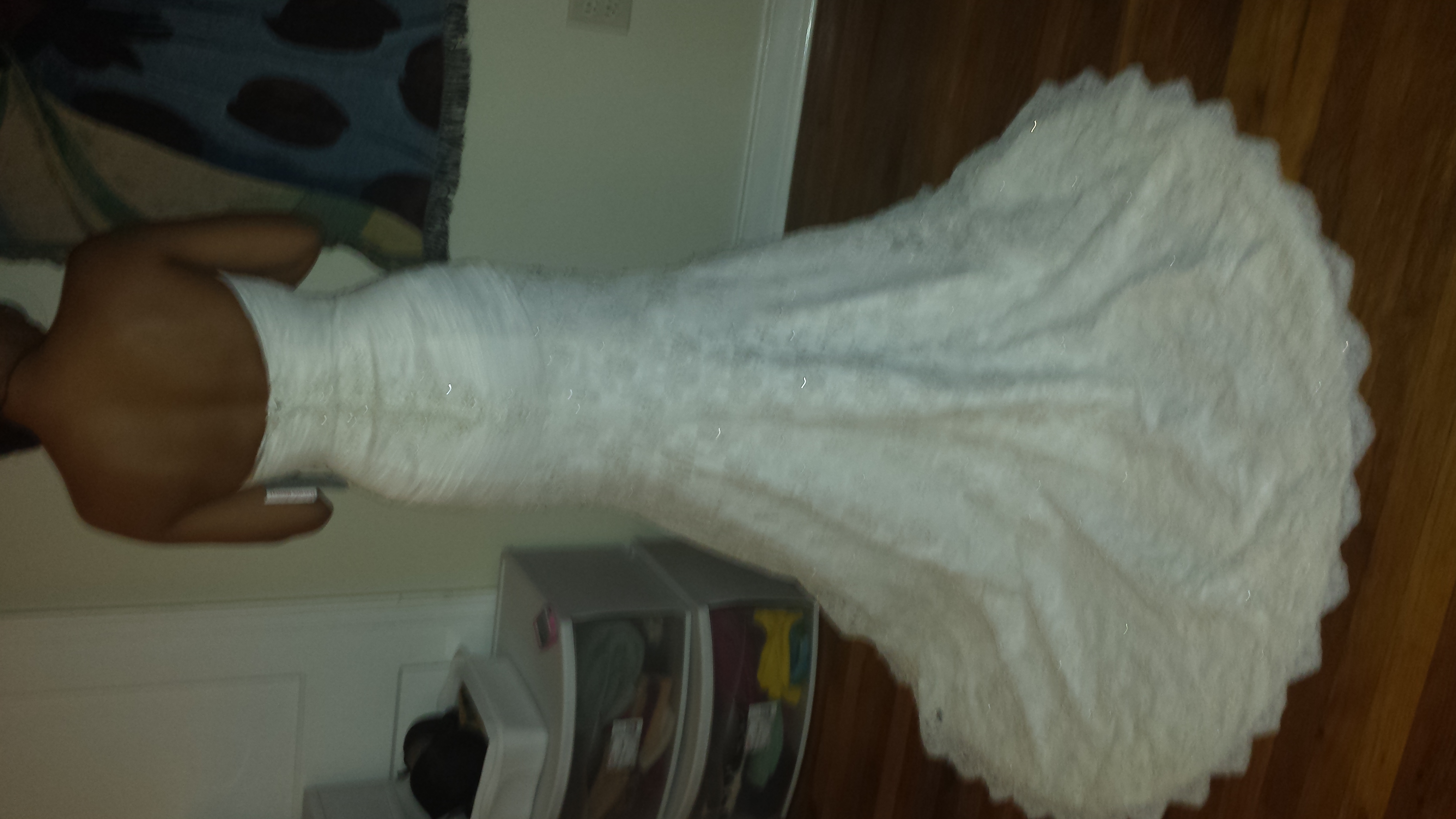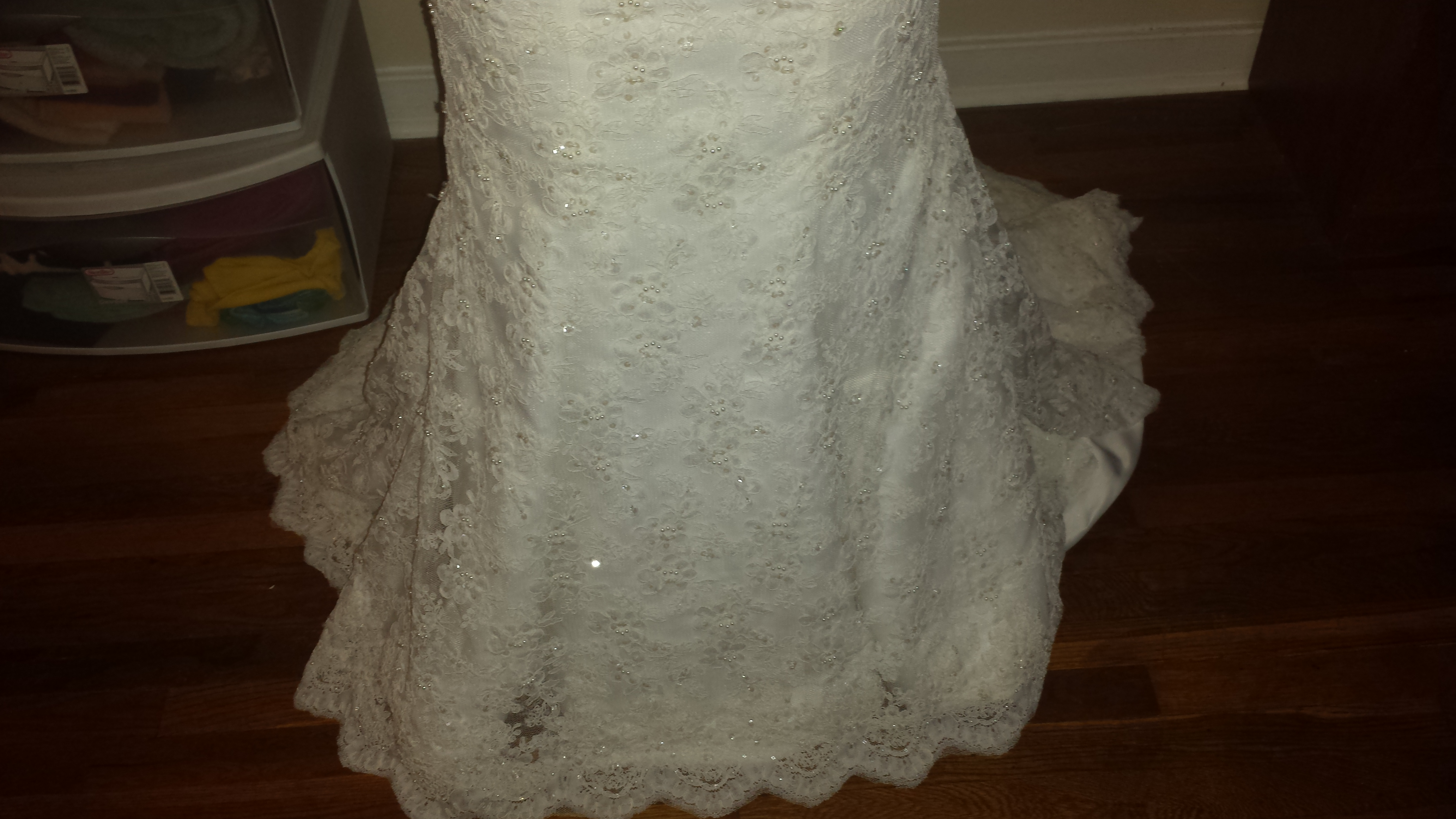 Beautiful size 6 wedding gown for sale. The dress is a strapless, ivory dress with lace and a small train. The tags are still attached. The dress has never been altered. Originally paid $1050, but I am only asking $300 for the dress.