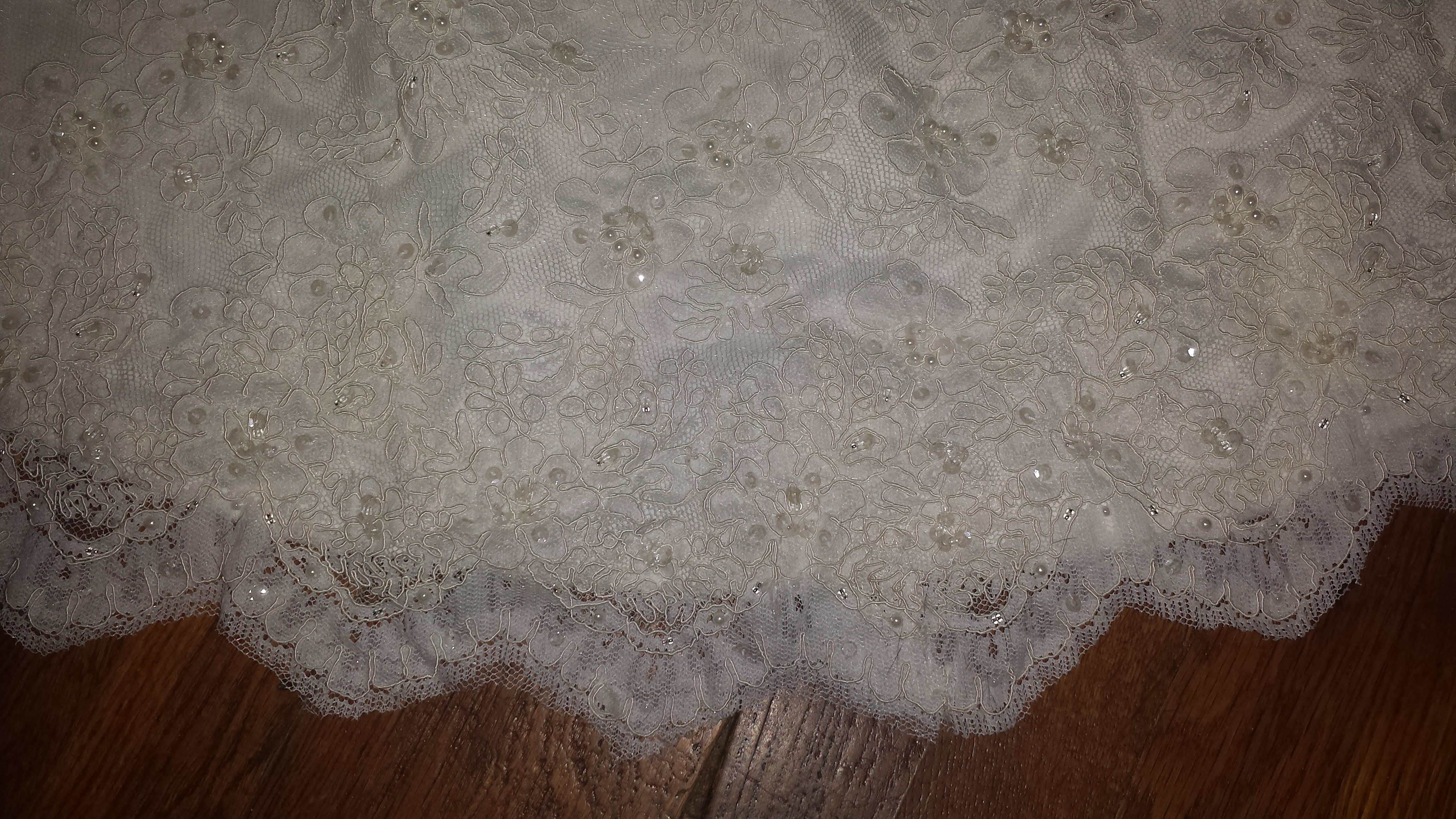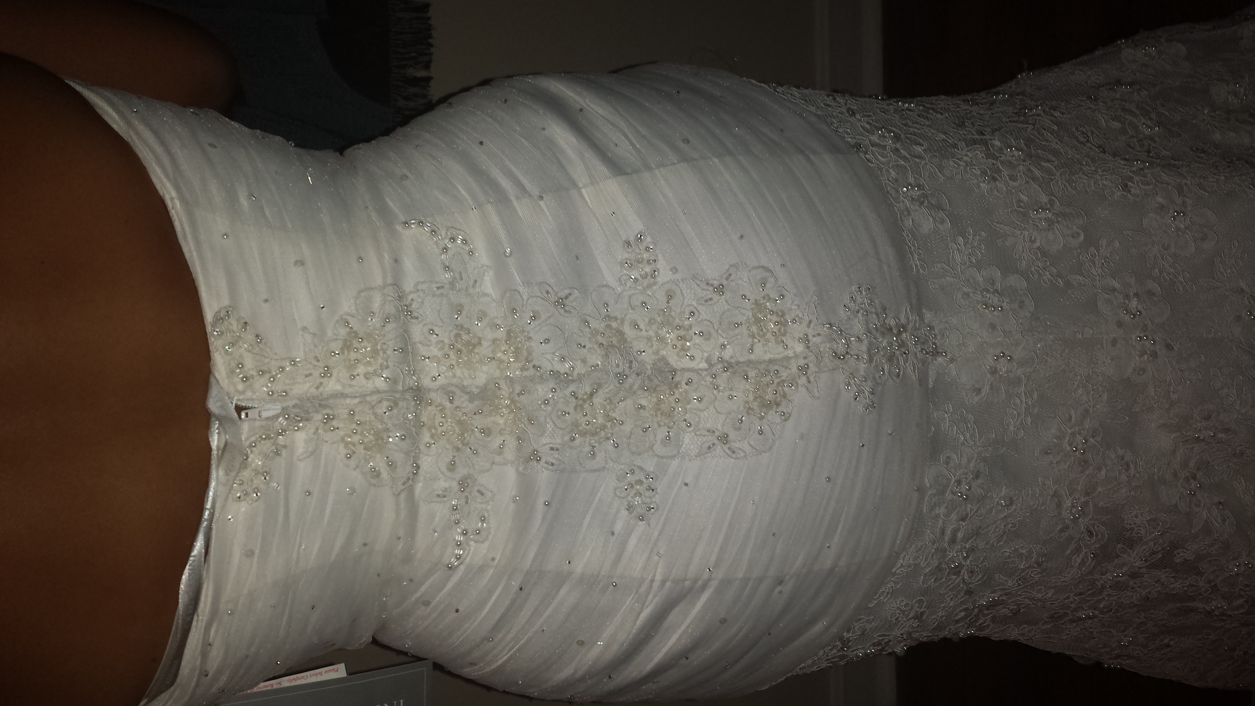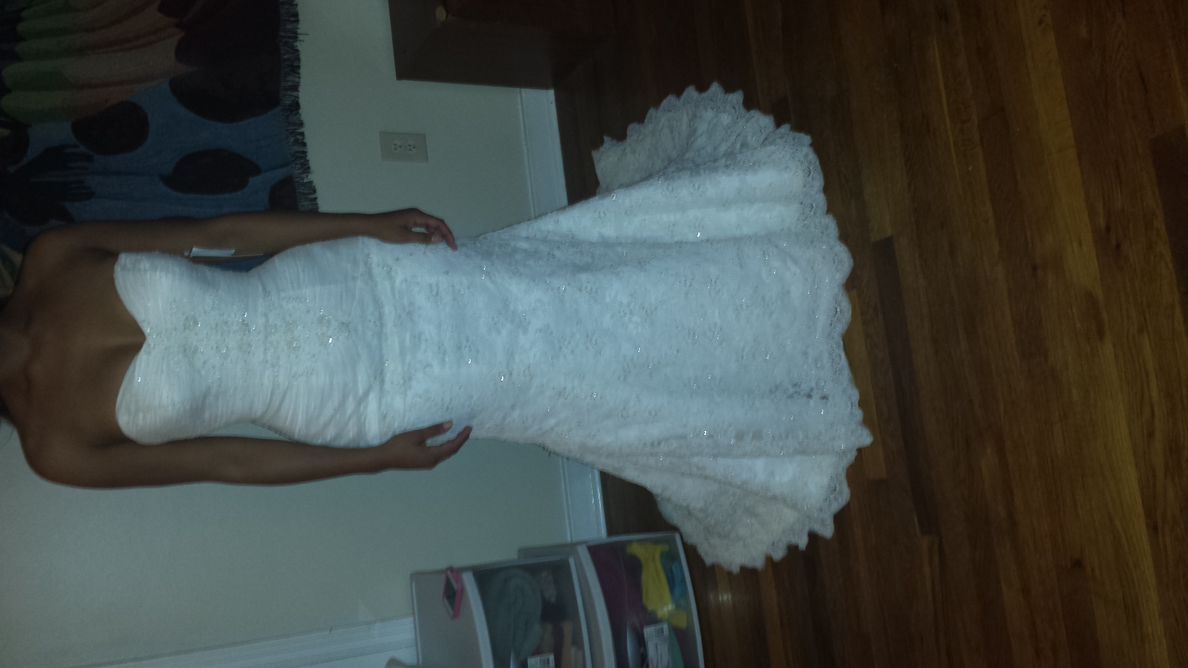 Beautiful size 6 wedding gown for sale. The dress is a strapless, ivory dress with lace and a small train. The tags are still attached. The dress has never been altered. Originally paid $1050, but I am only asking $300 for the dress.