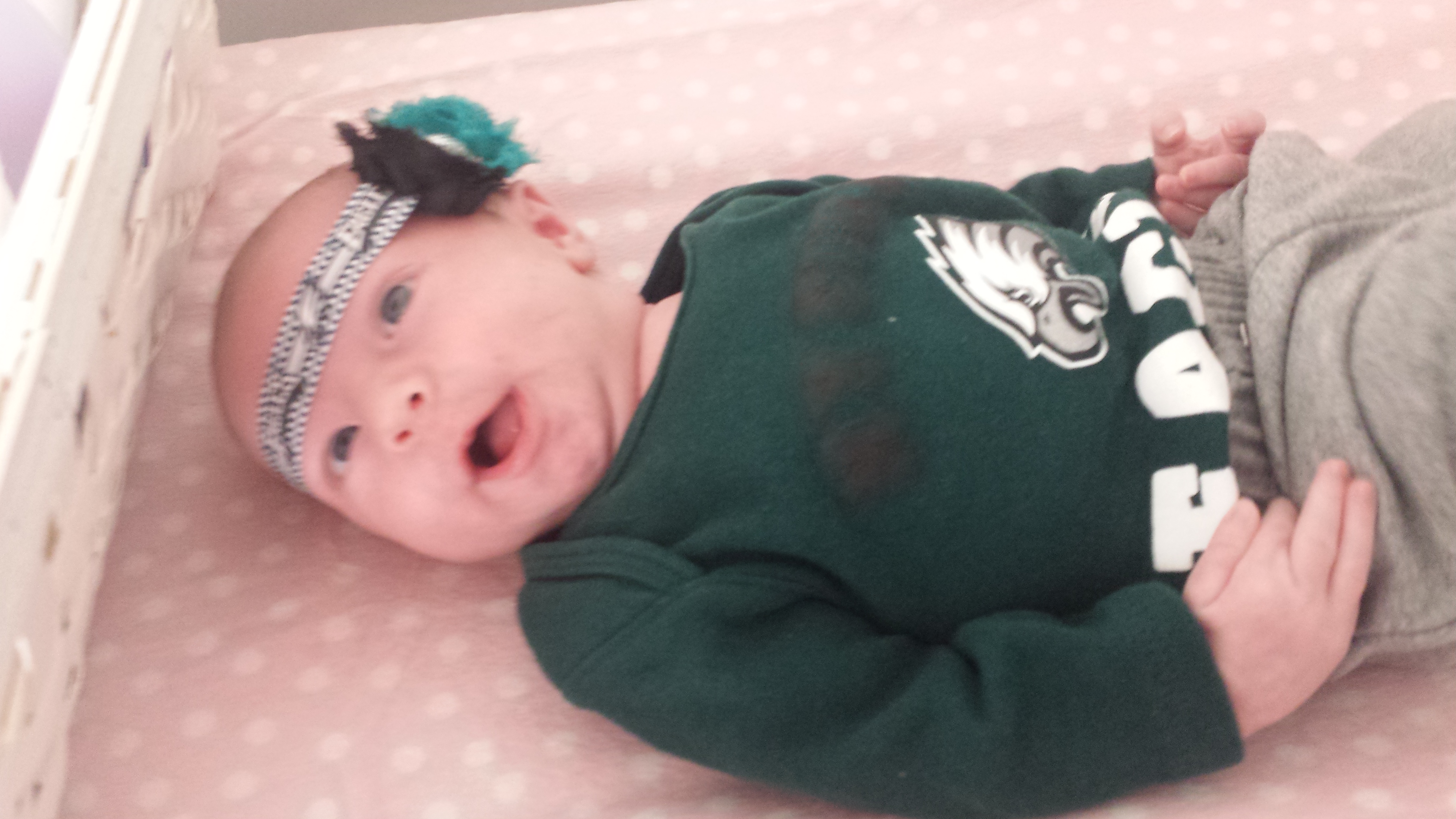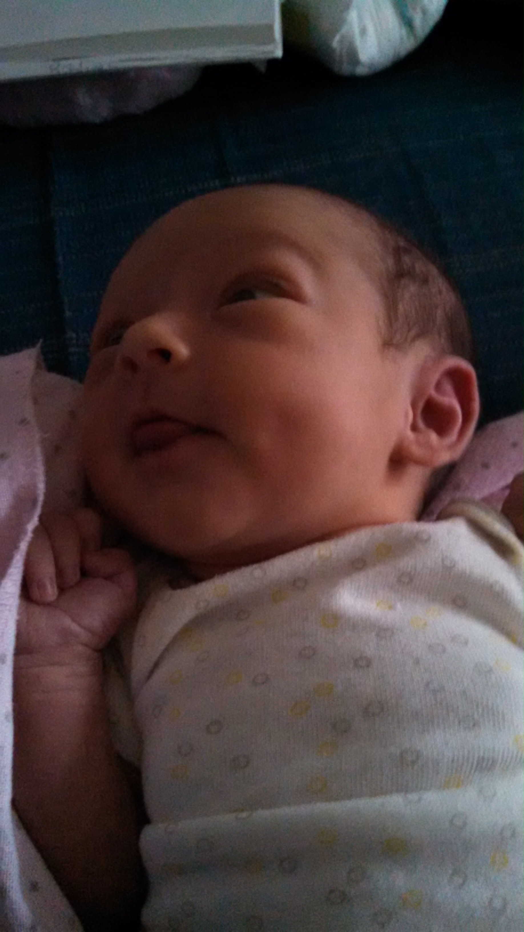 Any Milestones this week? She has been holding her head up pretty well since she was less than a day old. And she smiles all the time! Oh, and she kicks herself up with her feet when we do tummy time and bonks mommy in the chin with her head.