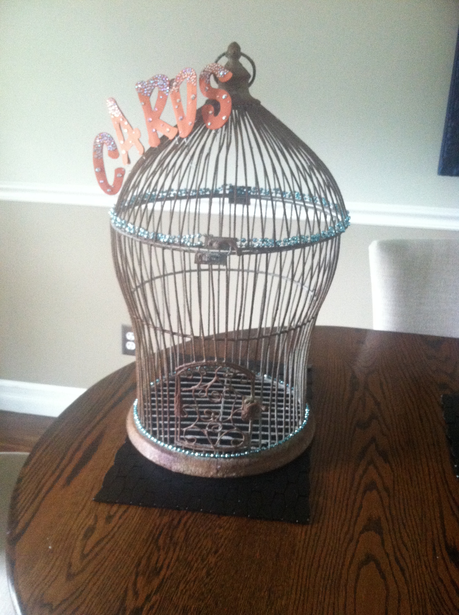 Rustic birdcage can be used to add a flair of vintage beauty to your special day.... Use this as your wedding card holder! To show you just how this can be jazzed up I strung some beads around the top & bottom (which are easily removed) & added a "cards" sign to the top. Or if you prefer to let this beautiful piece stand by itself, don't add any decorations & it will still be a much talked about piece! The top opens, as you can see from the pictures. If you want to leave the top closed, wedding cards can slip easily through the spaces, so not to worry!!!