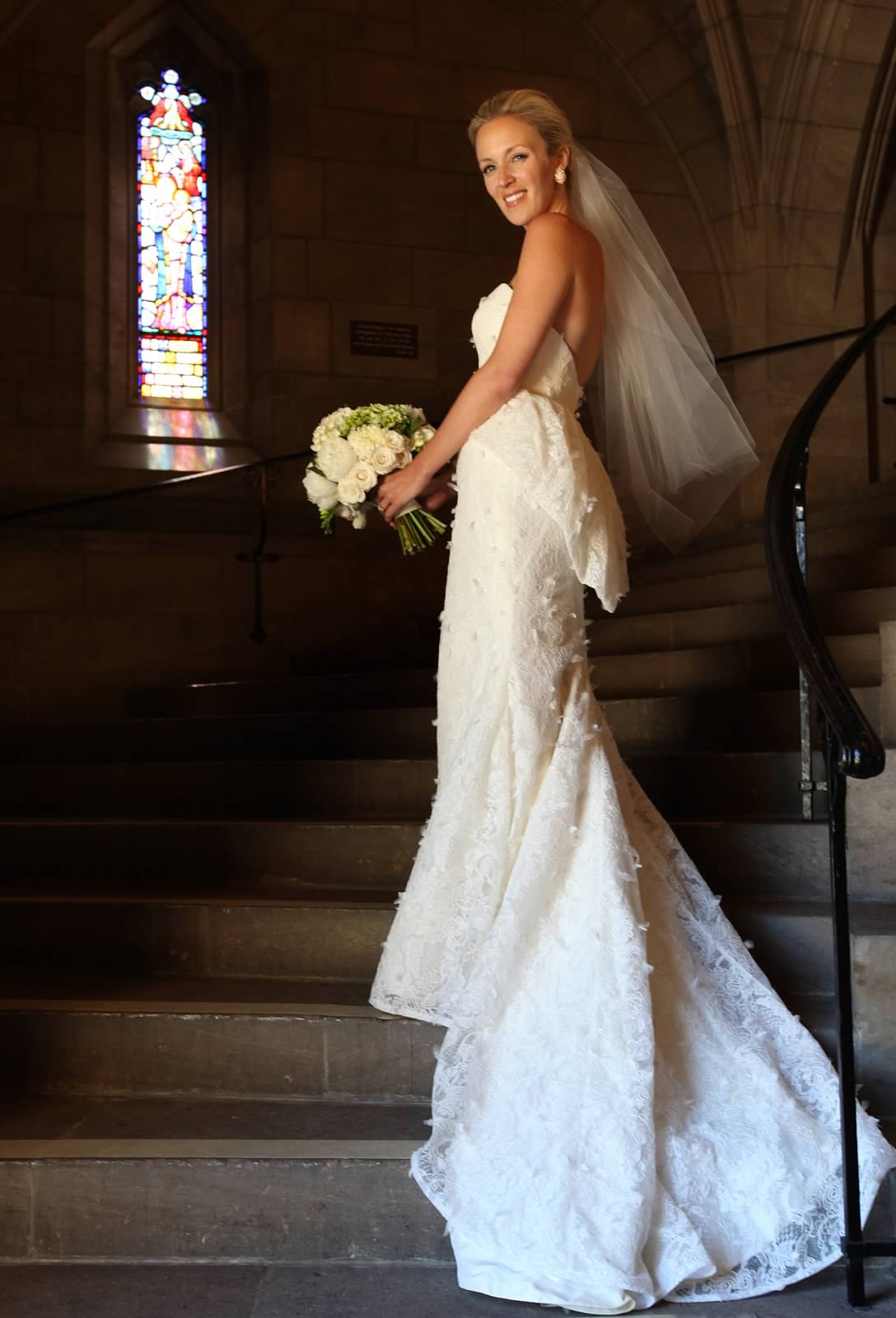 I purchased my gorgeous Elizabeth Fillmore dress at an Elizabeth Fillmore trunk show at Gabriella Bridal in NYC. Isabella is a strapless lace A-line dress with a sweetheart neckline, with a peplum waist and low back. The lace has delicate "petal" detailing. Elizabeth offered me a custom size 6 top and size 8 skirt, and the dress was tailored to what is a street size 2/4. I am 5'8". I am happy to show you the dress in person if you are in the NYC area.