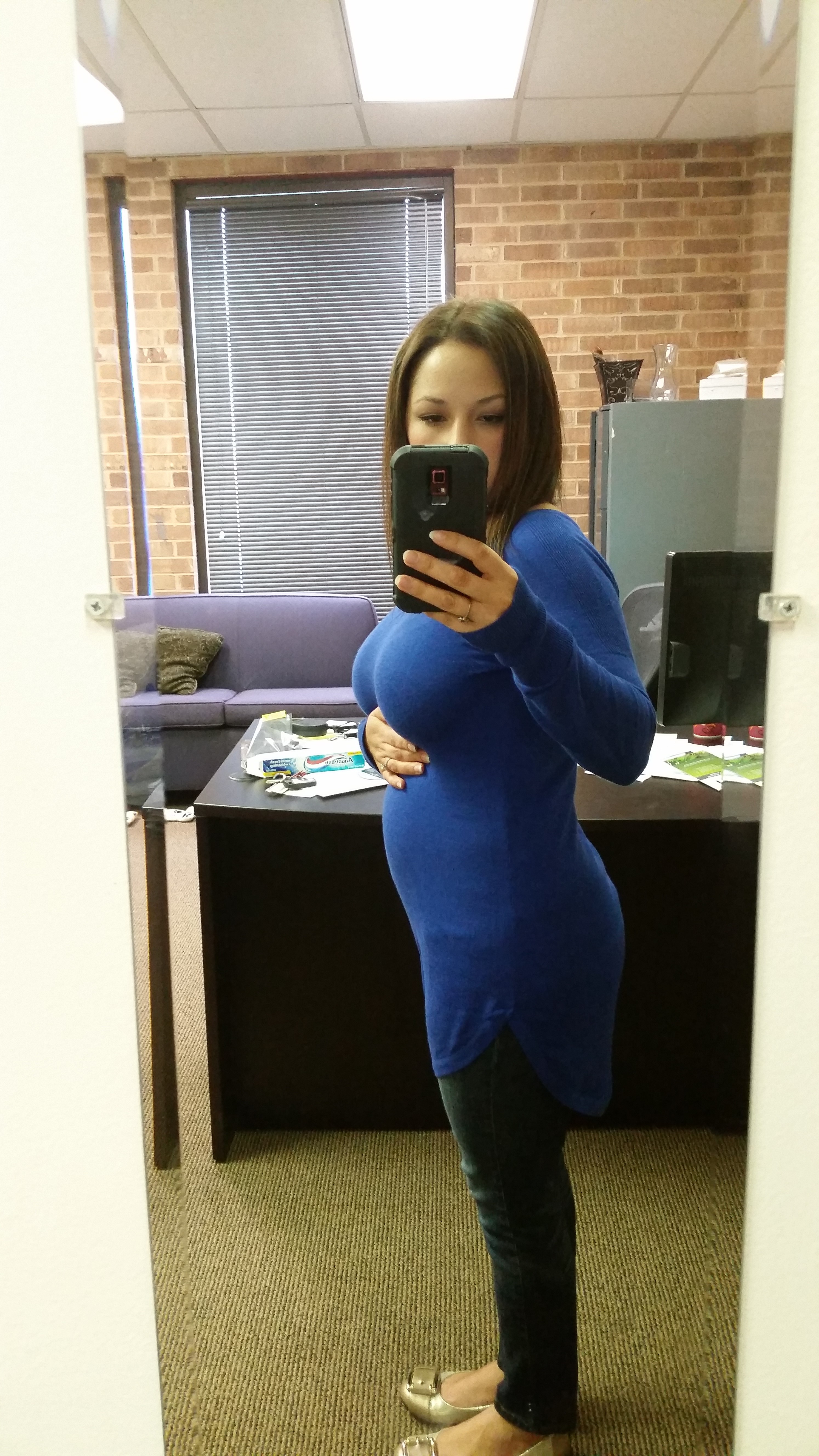 As for shirts, I had to go shopping this weekend for some. Most of my shirts are short too and just make me look really wide. My belly isn't sticking out far enough to look like a bump, but like I've just had way too many donuts. I can't wait to get a little bigger so I can wear more form fitting shirts again. I'm going to own my bump and show it off proudly!