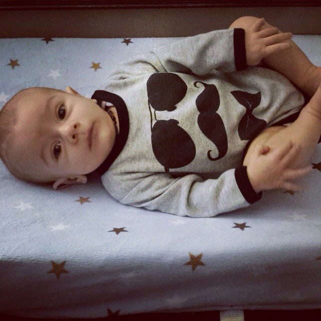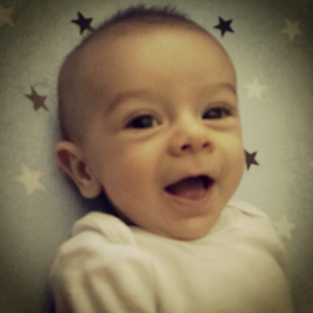 Any Milestones this week? He can sometimes roll onto his back and he has started moving around more in his crib / bassinet. He loves laughing and smiling!