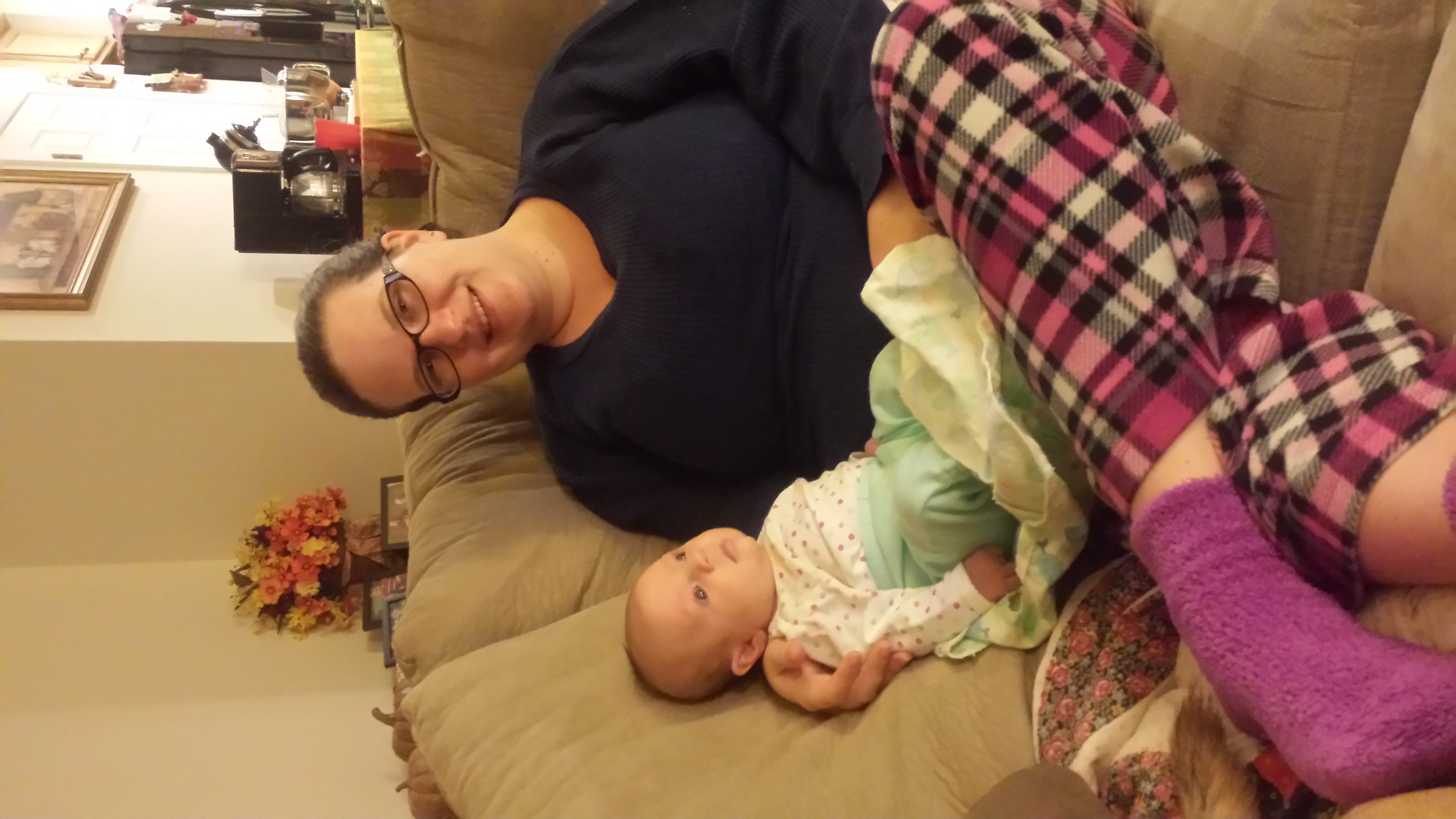 Rants/Thoughts/Baby pics? I don't know how I am going to leave her for the day on Monday. I am trying to prepare myself and her, but I cry trying to do get us ready. When I'm crying she looks at me like I'm nuts. I keep telling myself I was lucky enough to be home with O for 14 paid weeks. Many people don't have that luxury. I only have to work 7 days, then I'm off for 5 for Thanksgiving. She'll be home with H and home is only about 3 minutes from work. I can make it!