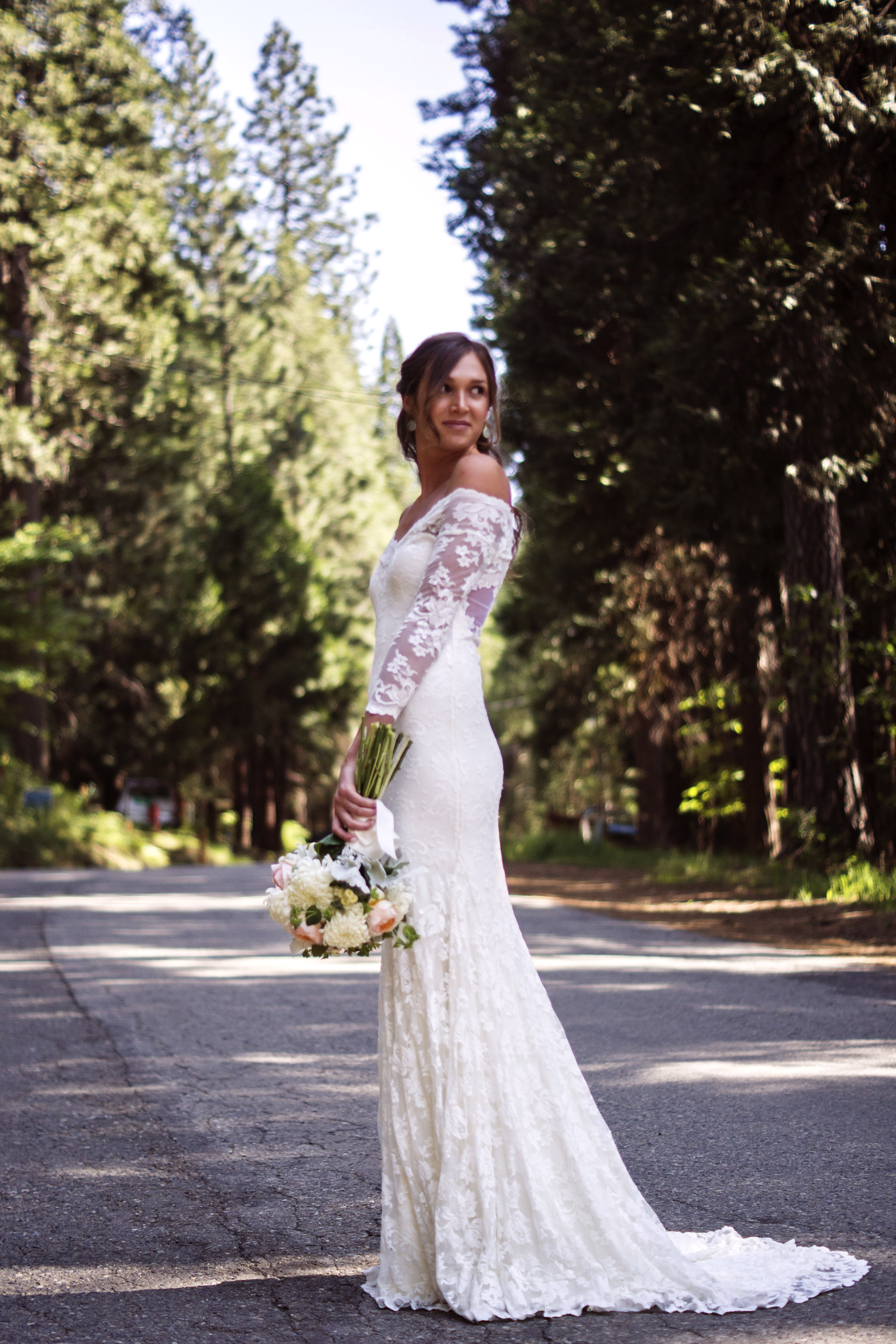 This dress comes in a delicate ivory lace with a soft stretchy spandex-like material underneath for comfort. The dress is from Olvi’s Lace Wedding collection and is only found in Germany. The dress has gorgeous lace sleeves and a sweet heart neckline. It also hangs off the shoulders, flatters your curves and has an eloquent train. What made me fall in love with the dress (other then the fact that it is absolutely stunning) is how it feels on. The underneath lining is the most comfortable, stretchy material. In this dress you will look gorgeous and yet feel comfortable all night. I wore it at my 2014 May wedding. The dress has ZERO signs of wear and tear. After wearing the dress I had it professionally dry-cleaned and sealed in an air-tight box to keep it looking brand new. I purchased the dress for $2400 so I am asking a very generous $1500. It is a size 6/8. I know that you will LOVE and cherish this dress as much as I did on my big day! Feel free to email me with additional questions/ pictures I’d love to help you, my email is newtonan@mail.masters.edu.