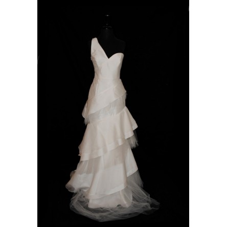 Stunning Carolina Herrera Lena wedding dress. This gown is perfect for today's modern Bride who wants to show off her fashion-forward, yet romantic style. This is a Silk Mikado and Silk Tulle one-shoulder gown with an asymmetrical layered skirt. Perfect condition. Stored in a professional bag with no pets or smoking. Contact for more pictures or google Carolina Herrera "Lena" dress.