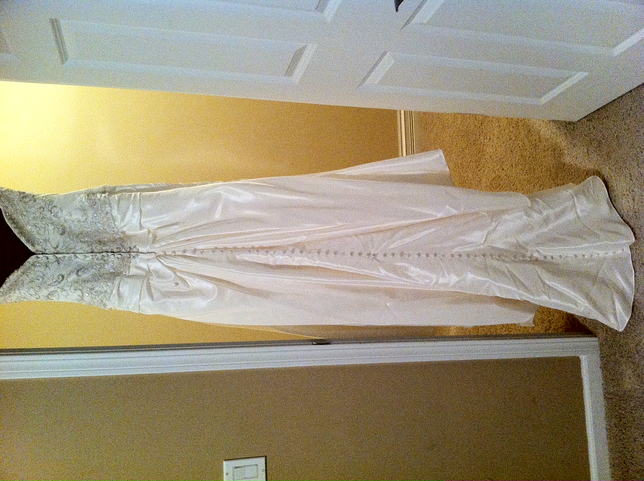 I have a beautifully detailed wedding dress for sale. It is strapless, has rhinestones and beading all over the top with the same details on the back and rhinestones/ buttons all along the train. Size 2, good condition, only wore it once, professionally cleaned. Bought at $2000, selling for $800 obo. Will ship nationwide.