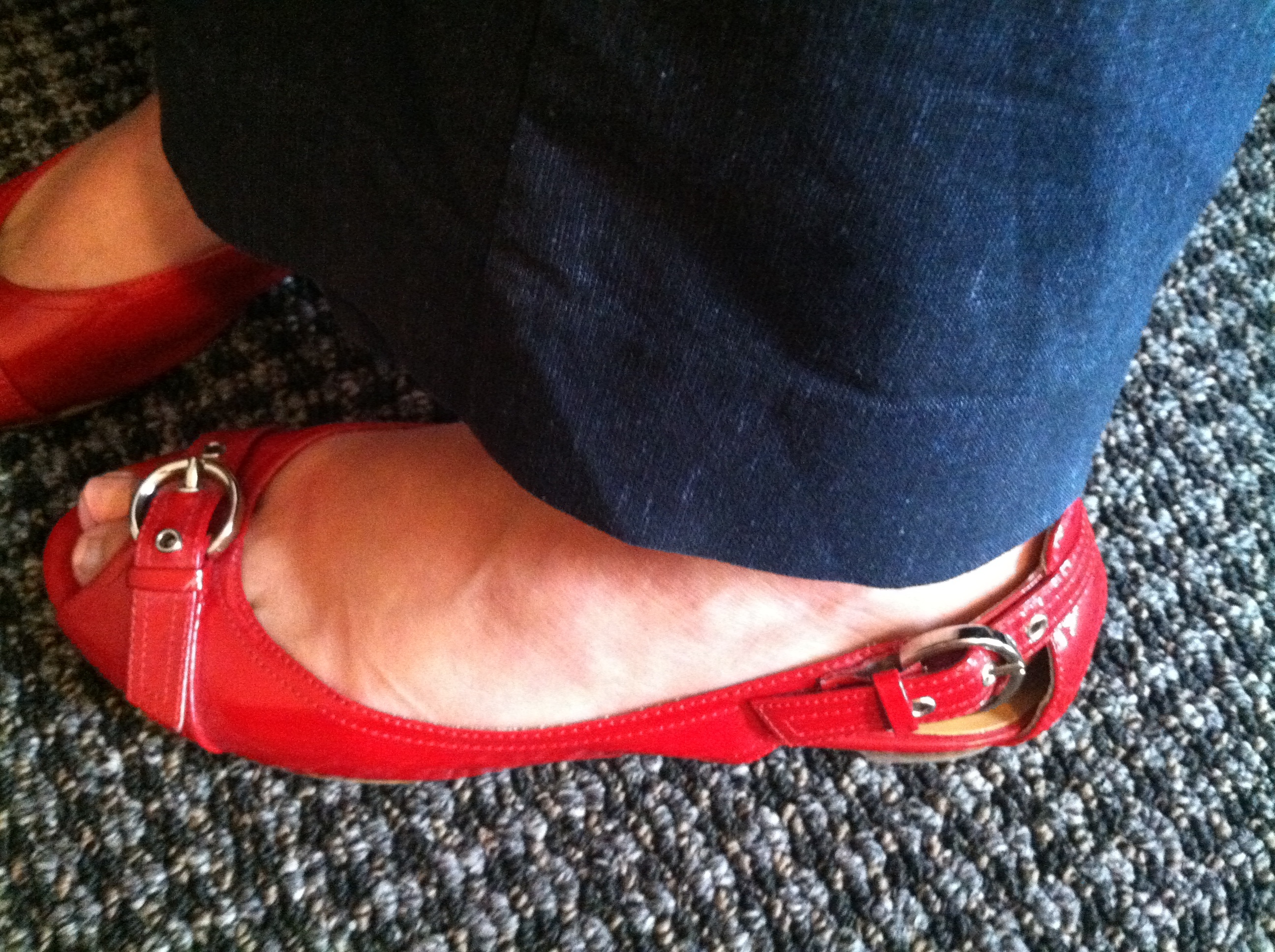 I'm set up at a show tonight with Tastefully Simple. So I'm dressed up a bit more. The black top will be replaced with a TS logo wrap top that I absolutely love. The bottoms are grey capri dress pants. Paired with my very comfortable black heels.