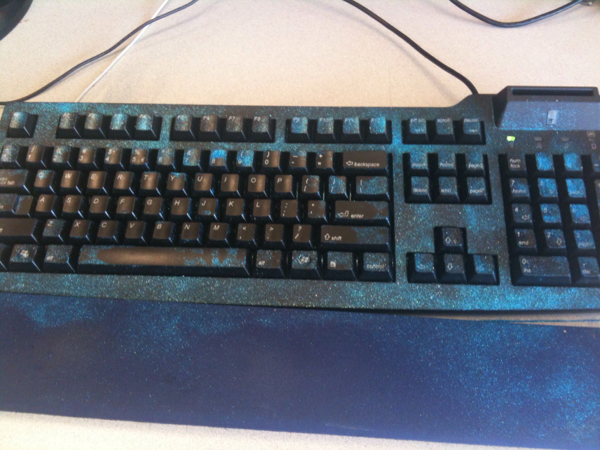 • My coworker covered her keyboard in glitter because "glitter fixes everything".  Oh yeah, she's employed as an IT person.