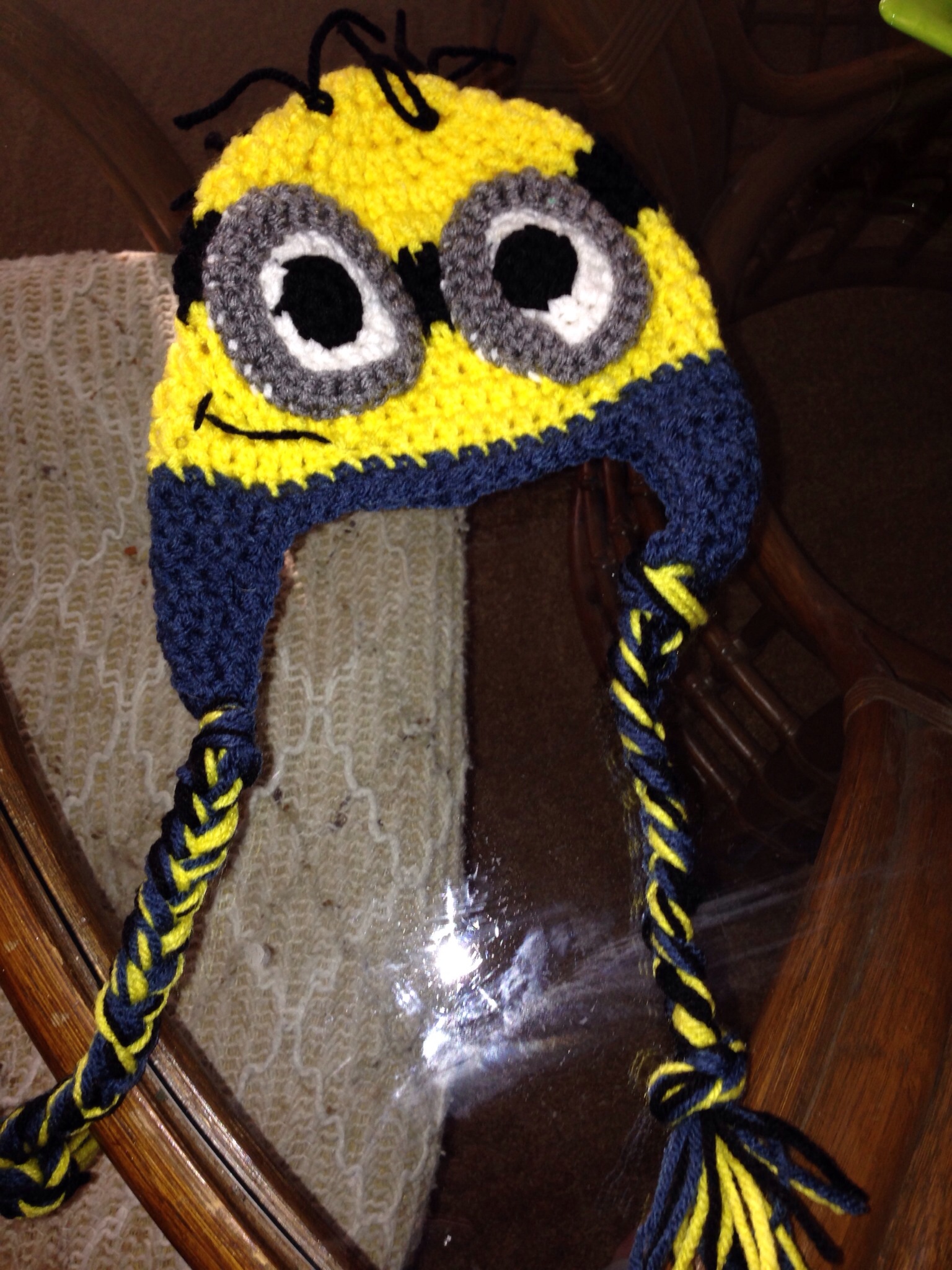 I had a friend make us a knitted Despicable Me's Dave the Minion hat. DH is obsessed with anything minion. This is the end result and it's freaking adorable. I love it!