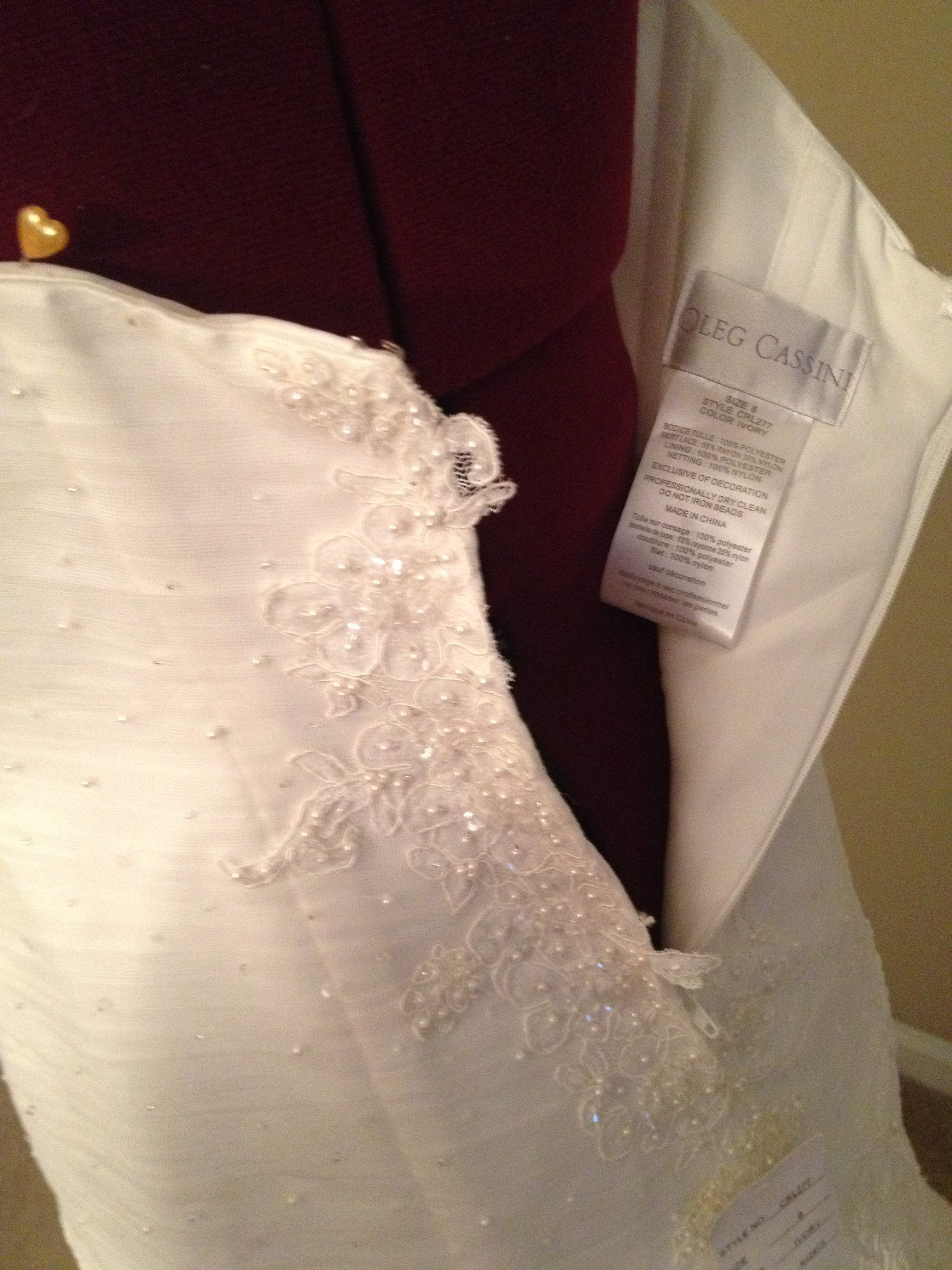 Re: New - Never Worn or altered Oleg Cassini Wedding Dress Size 6 Style CRL277