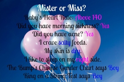 I will post this here in case those that aren't on the FB group are interested in playing! I posted this picture on FB for my friends and family to make guesses about baby's sex.