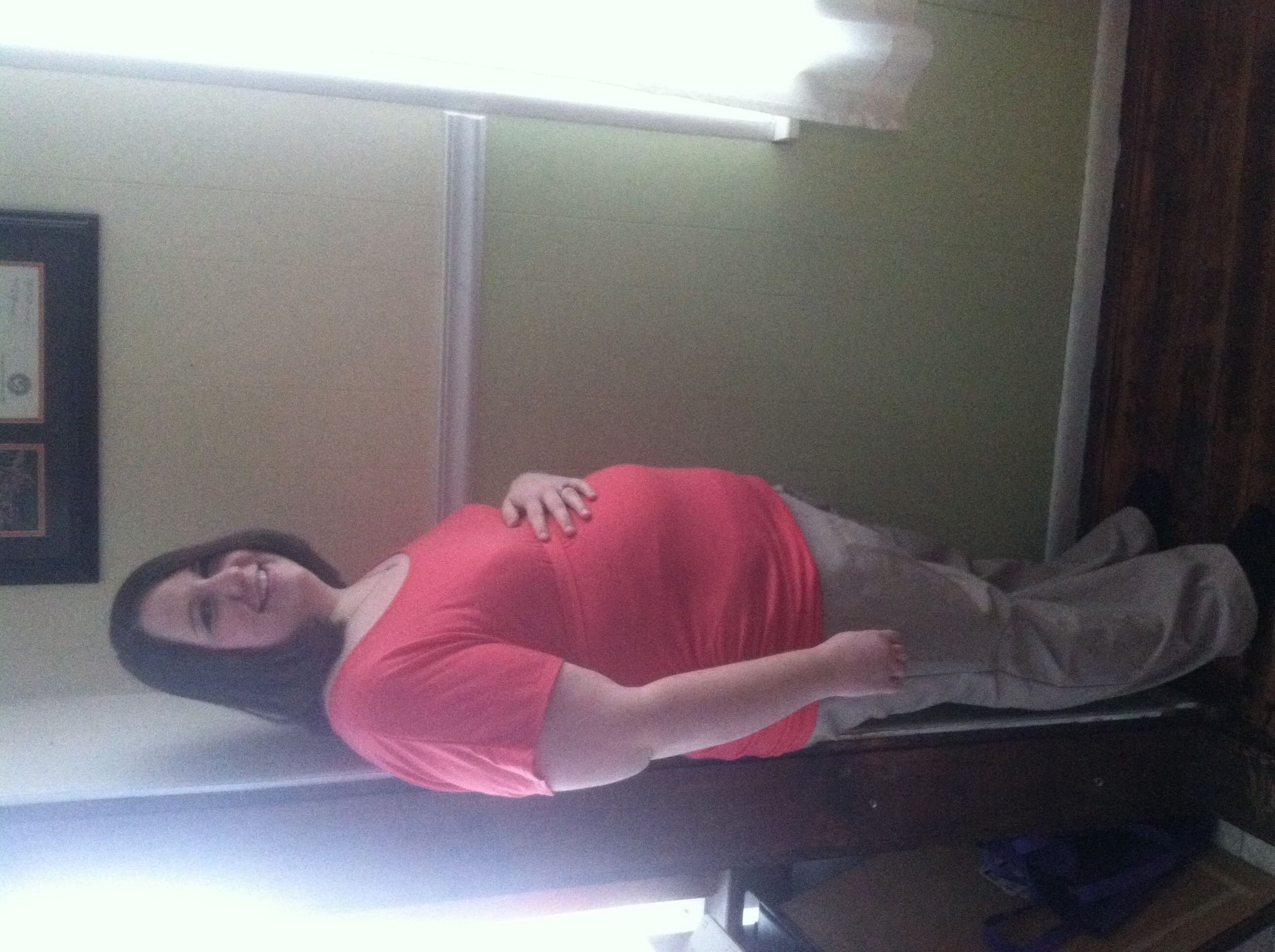 • Here's my most recent picture from yesterday. One of my friends asked if I was carrying high or low and I really don't know! I guess because I have always been overweight so it's hard for me to tell high or low. Sorry the pic is sideways!
