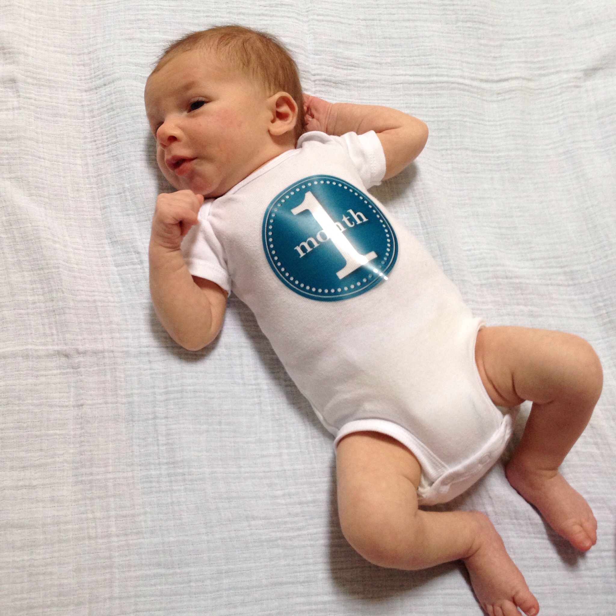 He weighed in at 8lbs 14oz, 21.5 inches yesterday at his one month visit. He is on the small side (43rd percentile for height and 27th for weight) but I no one is concerned.