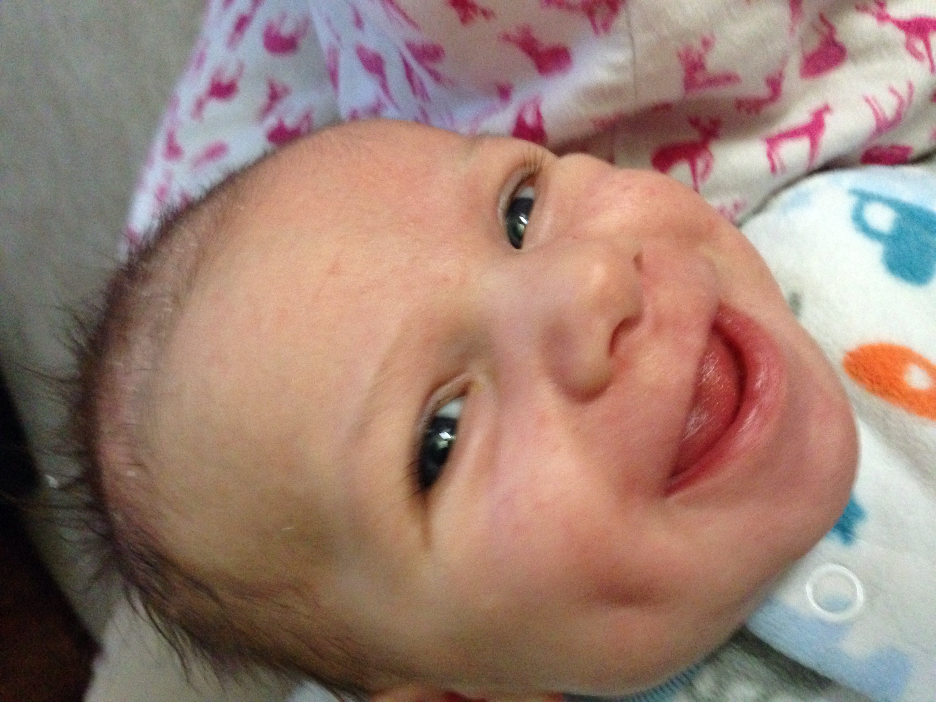 Smiling! Not an actual social smile, but it's still adorable! He also can entertain himself when left alone. He likes watching the toys on his activity mat and can sometimes kick his feet to get the piano to play music. Coincidence, I am sure, but he seems to like it either way.