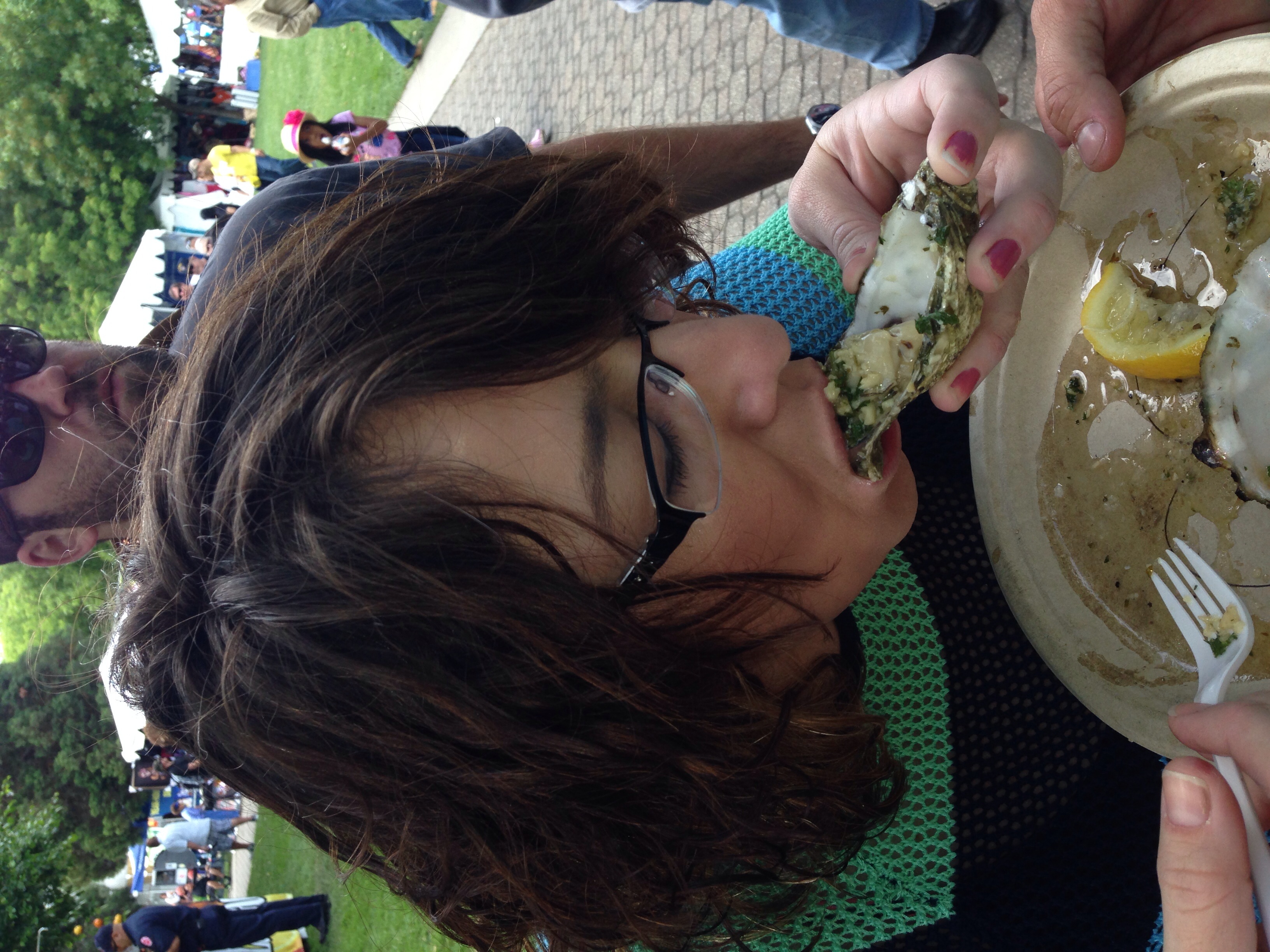 (I know the picture of me sucking an oyster isn't flattering. Ha.)