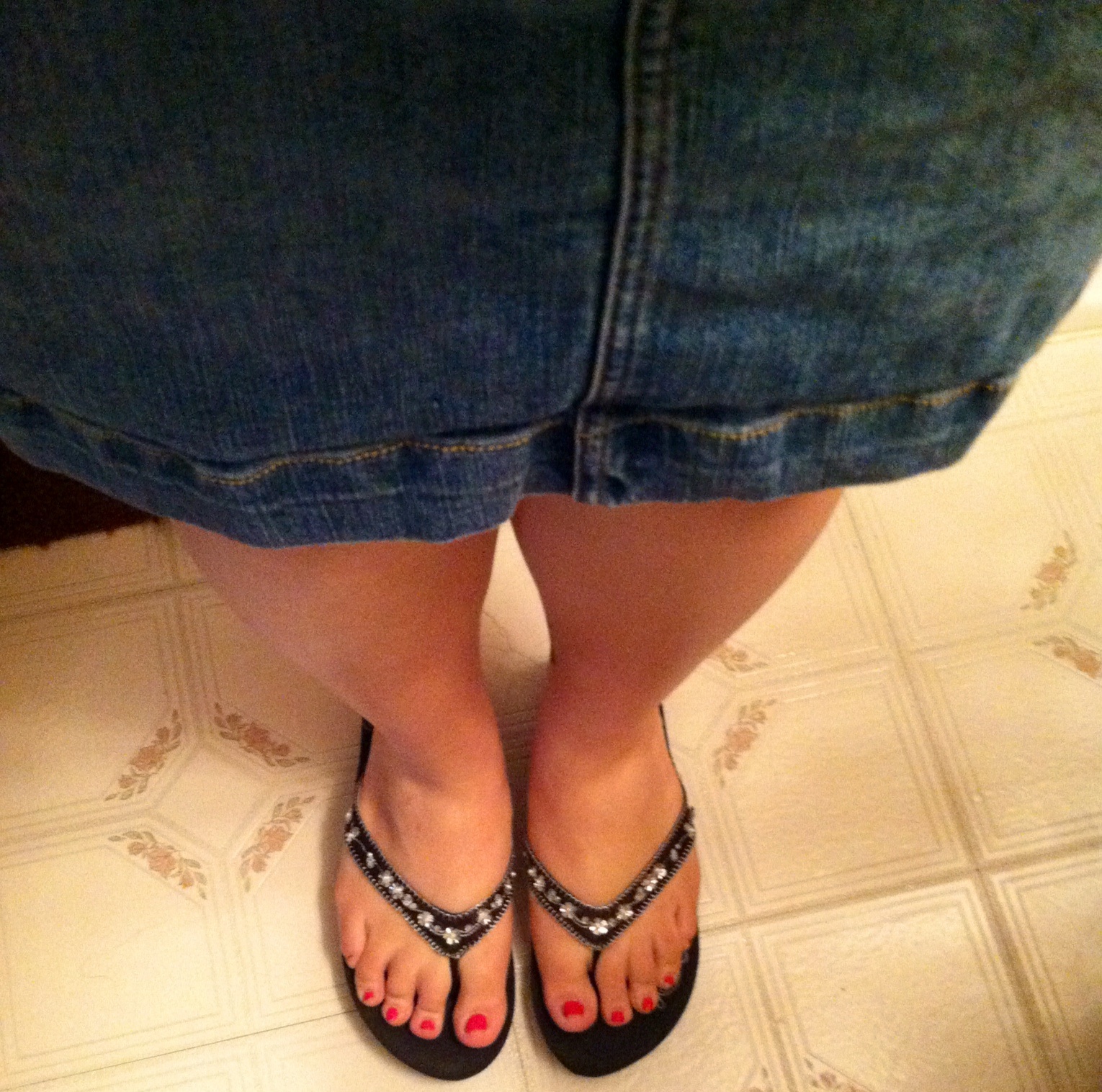 I have no clue where the jean skirt is from, maybe Fashion Bug. The shirt and flip flops are from Kohls.