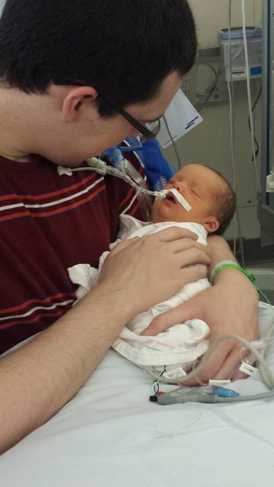 Colin ended up spending 8 days in the NICU, he was intubated twice with two doses of steroids (surfactant). I was finally able to hold him 3 days after he was born (hardest time ever, waiting to hold your baby). After he was extubated for the second time, he was on a nasal cannula with 50% O2. He couldn’t keep his blood oxygen saturated enough. He ended up pulling his own nasal cannula out and ended up being ok without it. We left the hospital after 5 days, it was SO hard leaving the hospital without our baby (again). We traveled over an hour each way every day and spent 10+ hours in the NICU with him each day. The nurses thought he would be home on Monday (7 days) but he had trouble desating after a difficult nursing session. Finally on April 15th he came home, the anniversary of my TAC surgery, the miracle procedure that made him a possibility. Our NICU nurses were outstanding, so understanding during my meltdowns and so good with him and taught us so much. All things considered it was as great experience, despite the circumstances. We love our little man and are so happy he is here!!