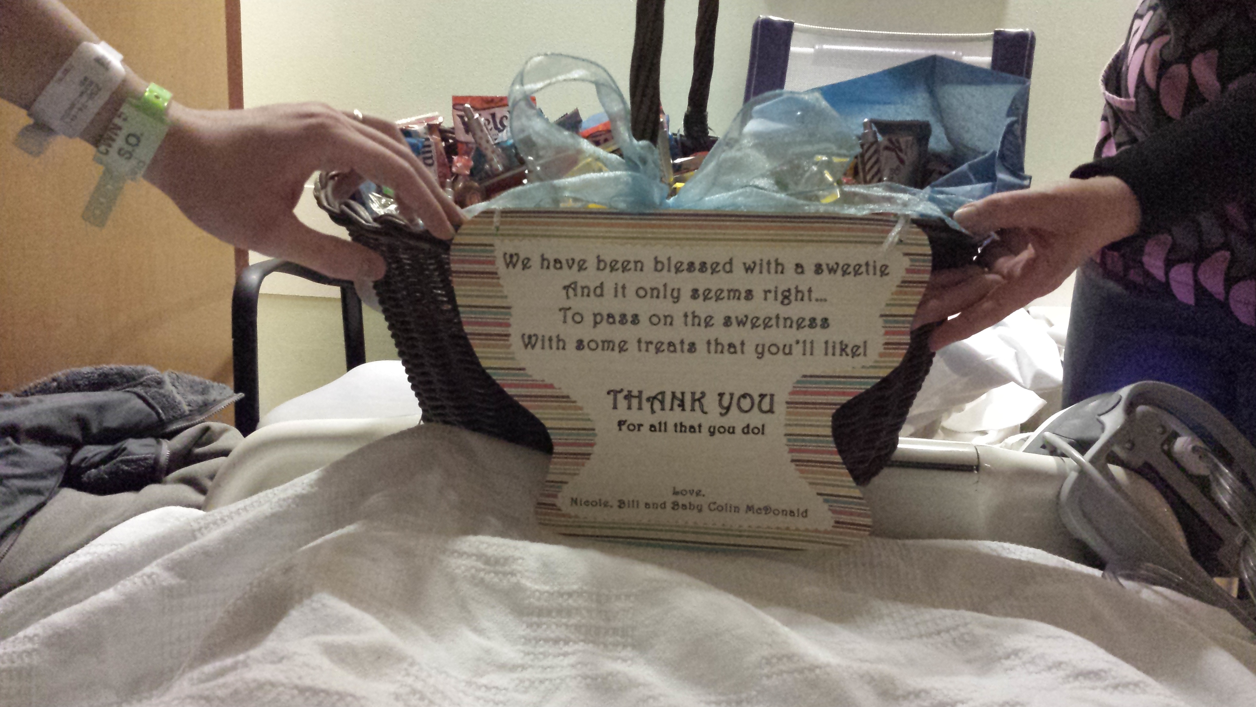 On April 7th we arrived at the hospital at 10:30 for our 12:30 c-section. Bill and my mom both came, I thought that I was going to be able to have my mom with me as well in the pre-op room, but I couldn’t. I needed her to talk me off the ledge! We waited a while to be moved into our room, once there I was instructed to change into a johnny. I had a wonderful nurse who was with me the whole day, and a junior from BC observing (turns out her roommate graduated with my sister, small world!) The resident came in and took lots of info, along with the anesthesia resident.