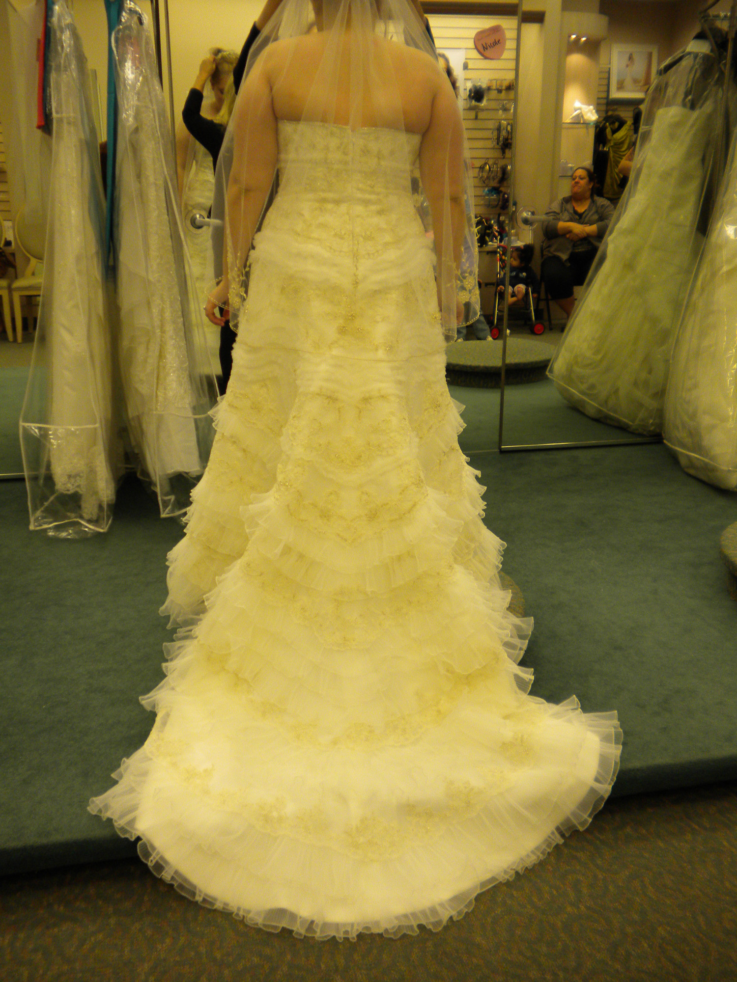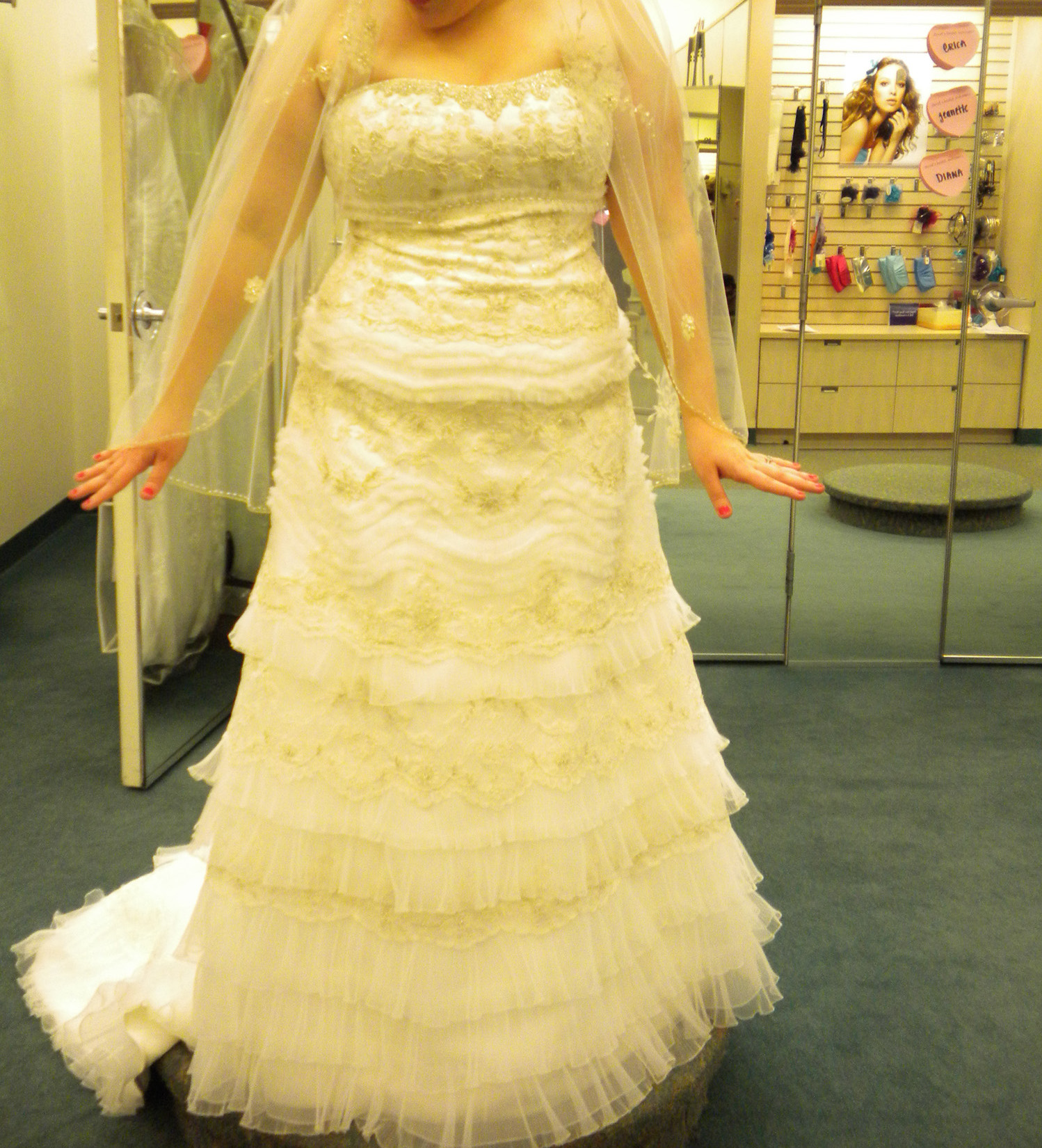 I have a brand new, literally still in the plastic Oleg Cassini wedding dress purchased from David's Bridal. There is nothing wrong with it - we just decided to elope and I never wore it!