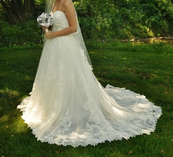 Re: Size 6/8 Strapless, Lace, Sweetheart Neckline Pronovias Pergola Wedding Dress and Accessories