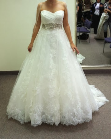 I paid $4500 for the dress and sash, not including the cost of alterations, and an additional $300 for the veil. I'm asking $1300 FOR ALL 3 PIECES because of the excellent condition it is in, but ALL OFFERS WILL BE CONSIDERED. I will consider selling the veil and/or sash separately, please make an offer. Because it has been altered, I know that any prospective buyers may want to try on and/or measure the dress prior to purchase, and I'm okay with that and am willing to meet up, as long as its a reasonable distance to drive.