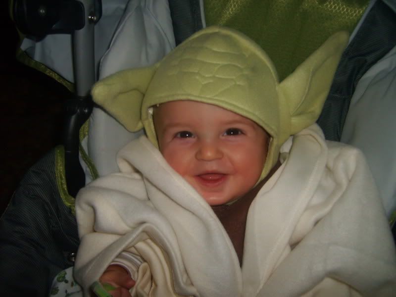 Chase was Yoda for his 1st Halloween and it was the funniest costume in the world. I loved it.